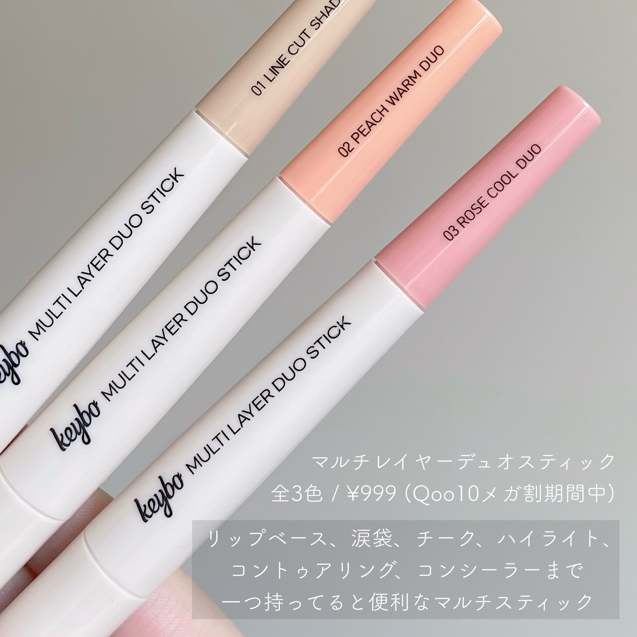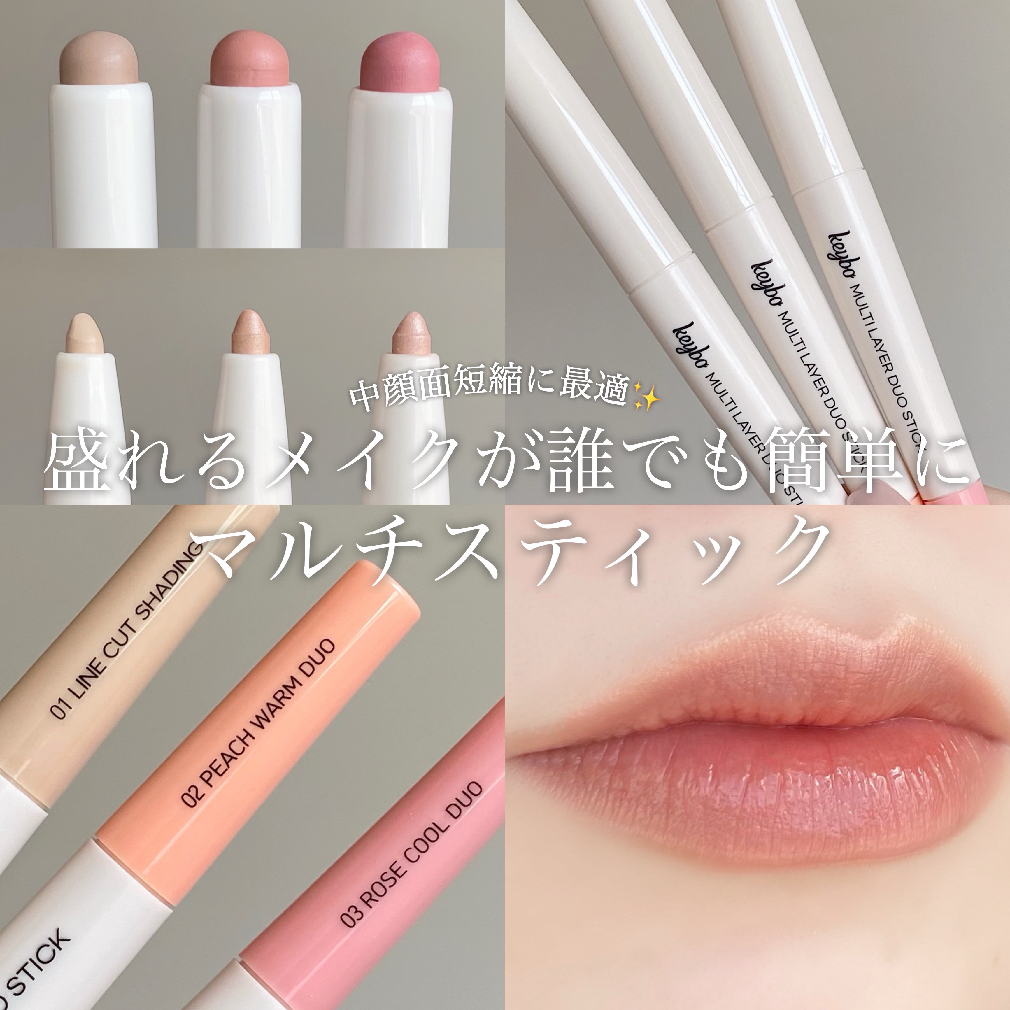 キボコスメティックマルチレイヤーデュオスティック01.ラインカットシェーディング03.ローズクールデュオ+もちミニパフ@keybo_cosmetic@keybo_jpリップベース、涙袋、チーク、コントゥアリング、コンシーラーまで一枚レイヤーで...