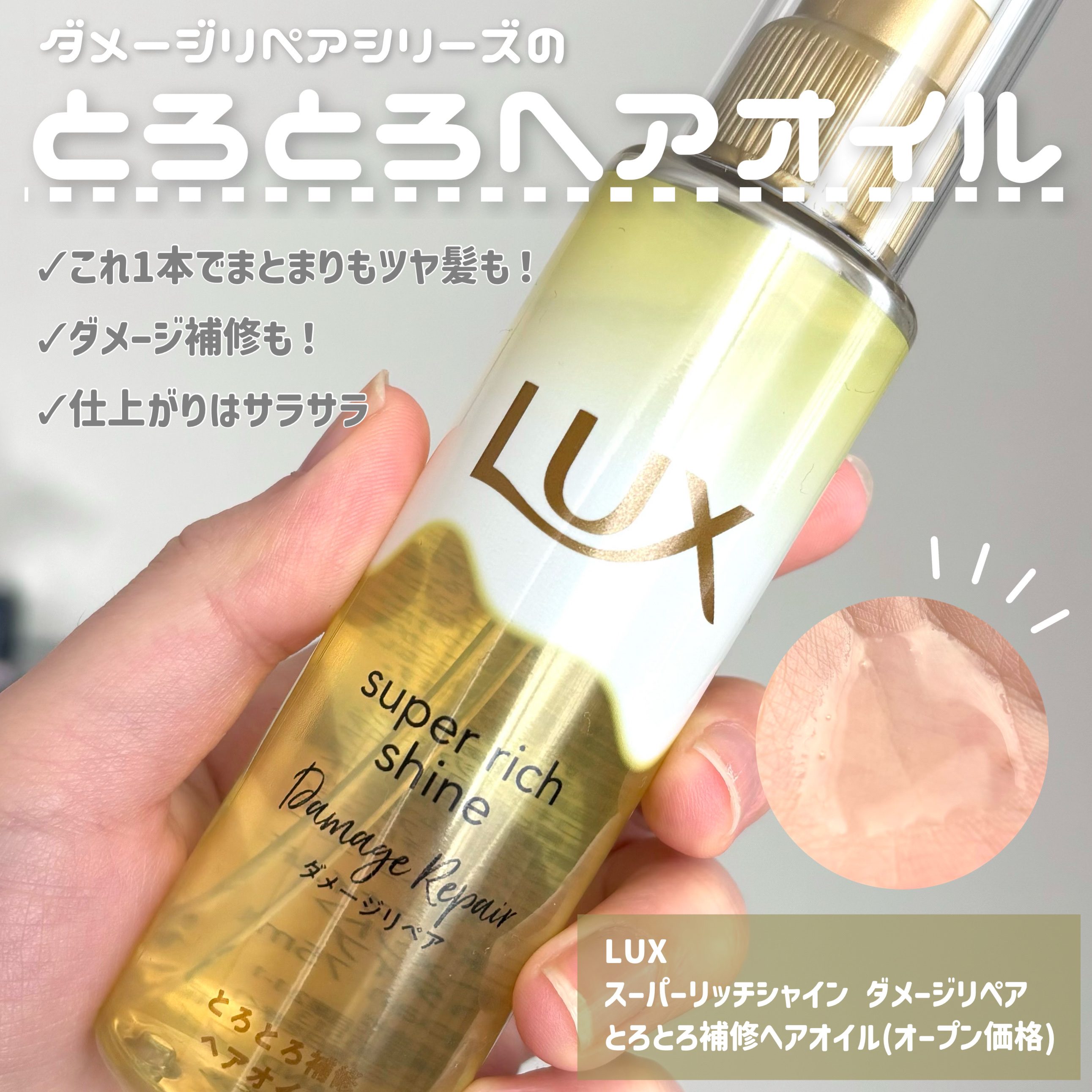 商品詳細情報LUX スーパーリッチシャイン ダメージリペア とろとろ補修ヘアオイル