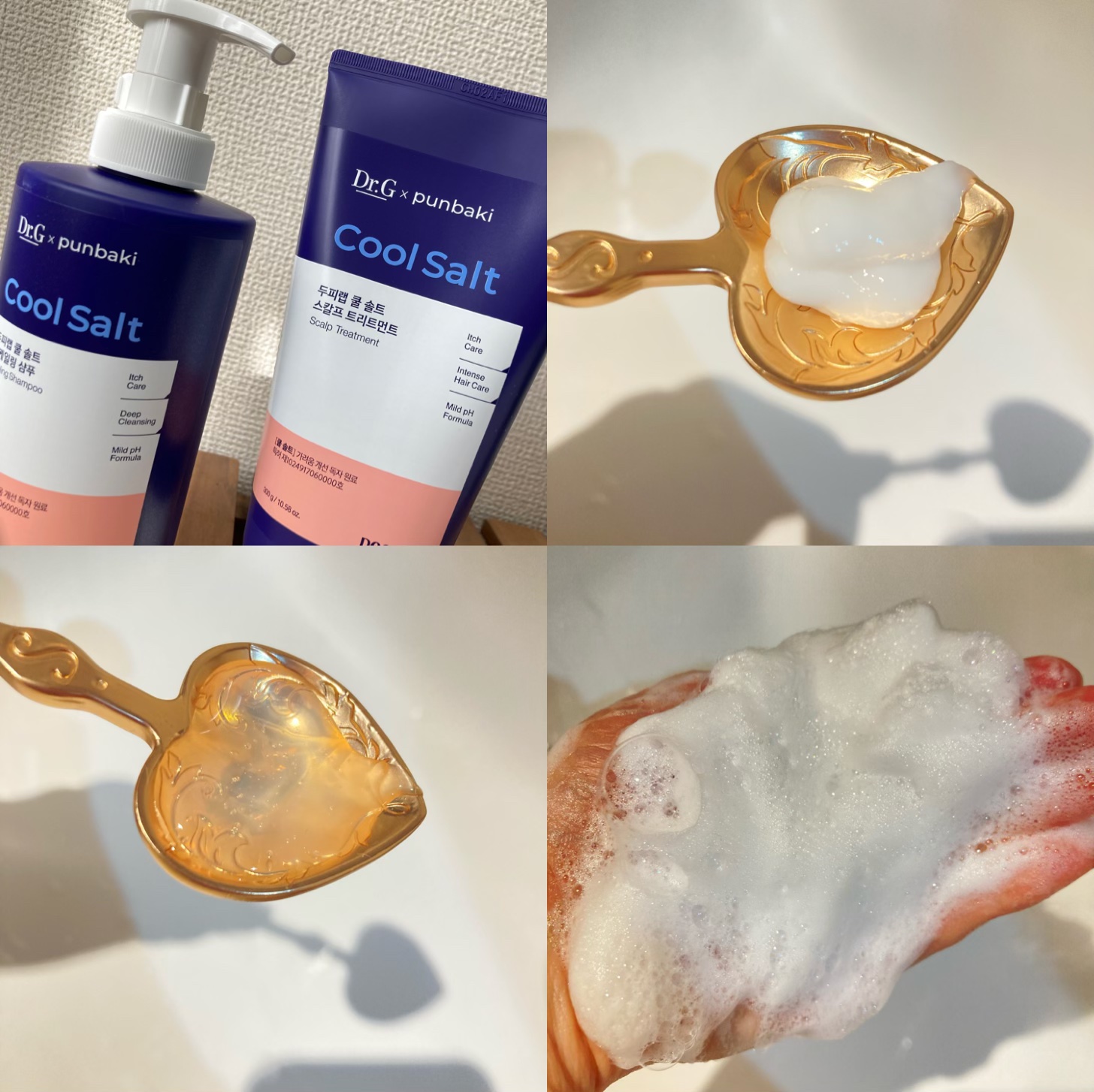 - ヘアケアラインは、頭皮も肌だ!ということで開発されました。 全商品に、クールソルト*が含まれており、頭皮を健やかに保ちます。 クールソルトは、3年の研究期間を経て、フランスの下ランド産の天然塩を液体状にし、ミネラル成分を最大限に活かせるように開発された、Dr.G独自の整肌成分です。敏感な肌を整え、頭皮をすっきりさせます。 シャンプー:パンテノール*やナイアシンアミド*が含まれており、ハリ・コシケアを助け、タンパク質*とアミノ酸*でキューティクルをケアします。さらに、3種のシカ成分*が頭皮を健やかに保ちます。 トリートメント:タンパク質*やアミノ酸*、ケラガード*で毛髪やキューティクルを守り、傷んだ髪を補修します。 ノンシリコンで、頭皮にも使え、頭皮をパックすることができます。 *整肌成分