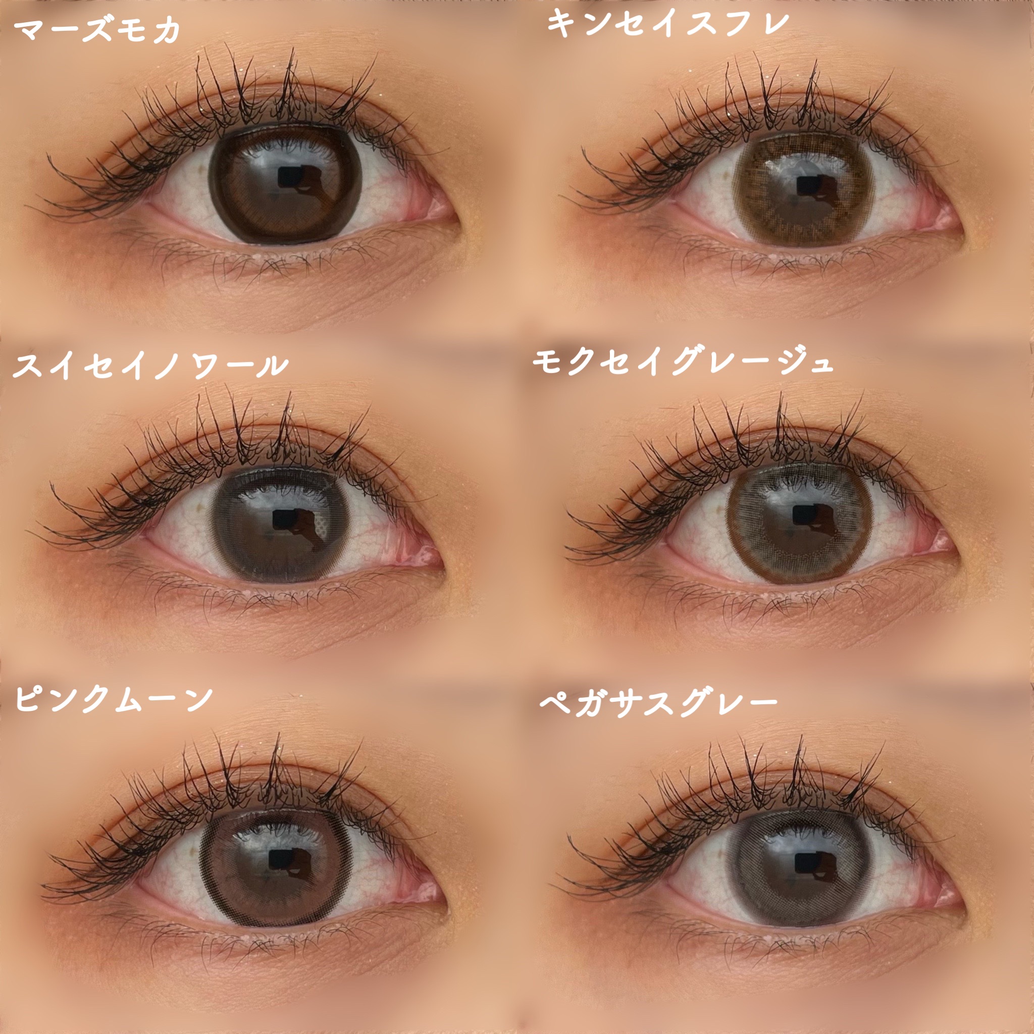 トーンアップモカは馴染んで裸眼を自然にトーンアップしてくれる くらげはめちゃくちゃ馴染むし、めちゃくちゃナチュラルに目が盛れる! カーヴィピンクはほどよいピンク!ダークトーンの縁があるから、目がくりっと丸く見えます プリズムスターはめっちゃ自然に目を大きくしてくれます 目に光が入って透明感もでる