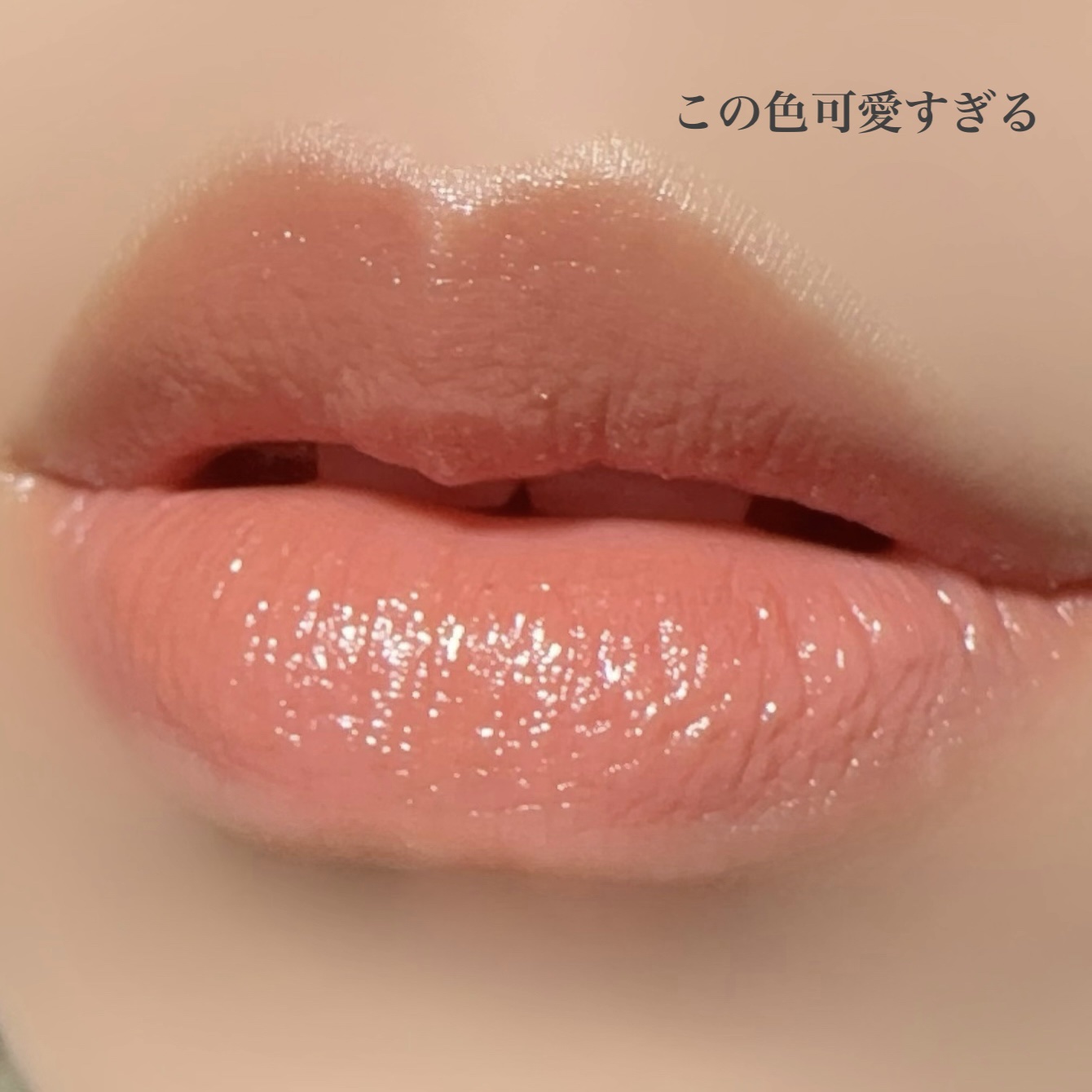 ねっちょりボリューム感あるテクスチャーだけど、ベタつきなく使いやすい。 ティントじゃない普通のグロスだから色もちは良くない。 発色ナチュラルだからこれだけでもいいけど、他のリップと合わせても可愛い!!