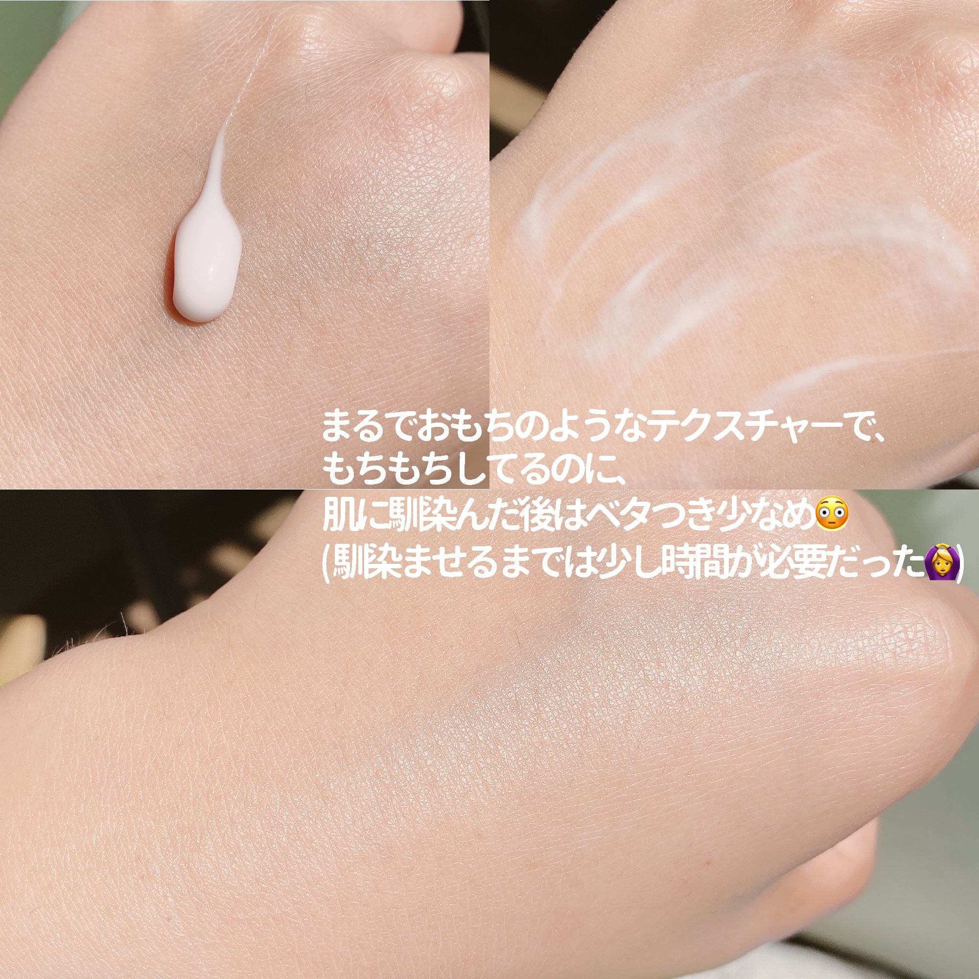 | もちっとのび〜る新感覚テクスチャークリーム! 少量でも伸びが良くしっとりだけどベタつきはなく、とても使いやすかった | 詳細を見る | |