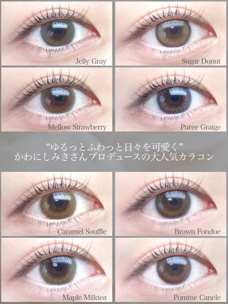 - ※2025年6月以降、商品パッケージ裏面・側面の一部表記を順次変更いたします。尚、これにかかる商品の交換・返品は承っておりません。 裸眼の色が明るい「茶目さん」、暗めな「黒目さん」、どちらの瞳の方が着けても不自然にならずあか抜けるレンズ。 日常使いしやすいブラウンベースのレンズをはじめ、肩ひじ張らずに可愛くなれるナチュラルなレンズとなっております。 ■mimuco ふんわり透明感セット キャラメルスフレ/ブラウンフォンデュ/メープルミルクティー/ポムカヌレ(各2枚入り) ■mimucoちゅるん透明感セット ゼリーグレー/シュガードーナツ/メローストロベリー/ピュレグレージュ(各2枚入り) カラーコンタクトレンズの不適正使用による眼障害の危険性等などがあります。 ●コンタクトレンズは高度管理医療機器です。不十分な洗浄・消毒など不適切なケアや、長時間・交換期間を超えた装用により、アレルギー性結膜炎、角膜感染症、角膜潰瘍等の重篤な眼障害が発生する危険性があります ●ご使用前に取扱説明書を確認してください 使用上の留意事項 ●眼科医院等を受診してからお求めください ●眼に異常を感じたら直ちにレンズ使用を中止し、お近くの眼科等で診察を受けてください ●医師の指示にしたがってご使用ください ●コンタクトレンズを装用する場合、自覚症状がなくても、眼科医院等での定期検査を受けてください ●レンズに不具合がある場合は使用しないでください