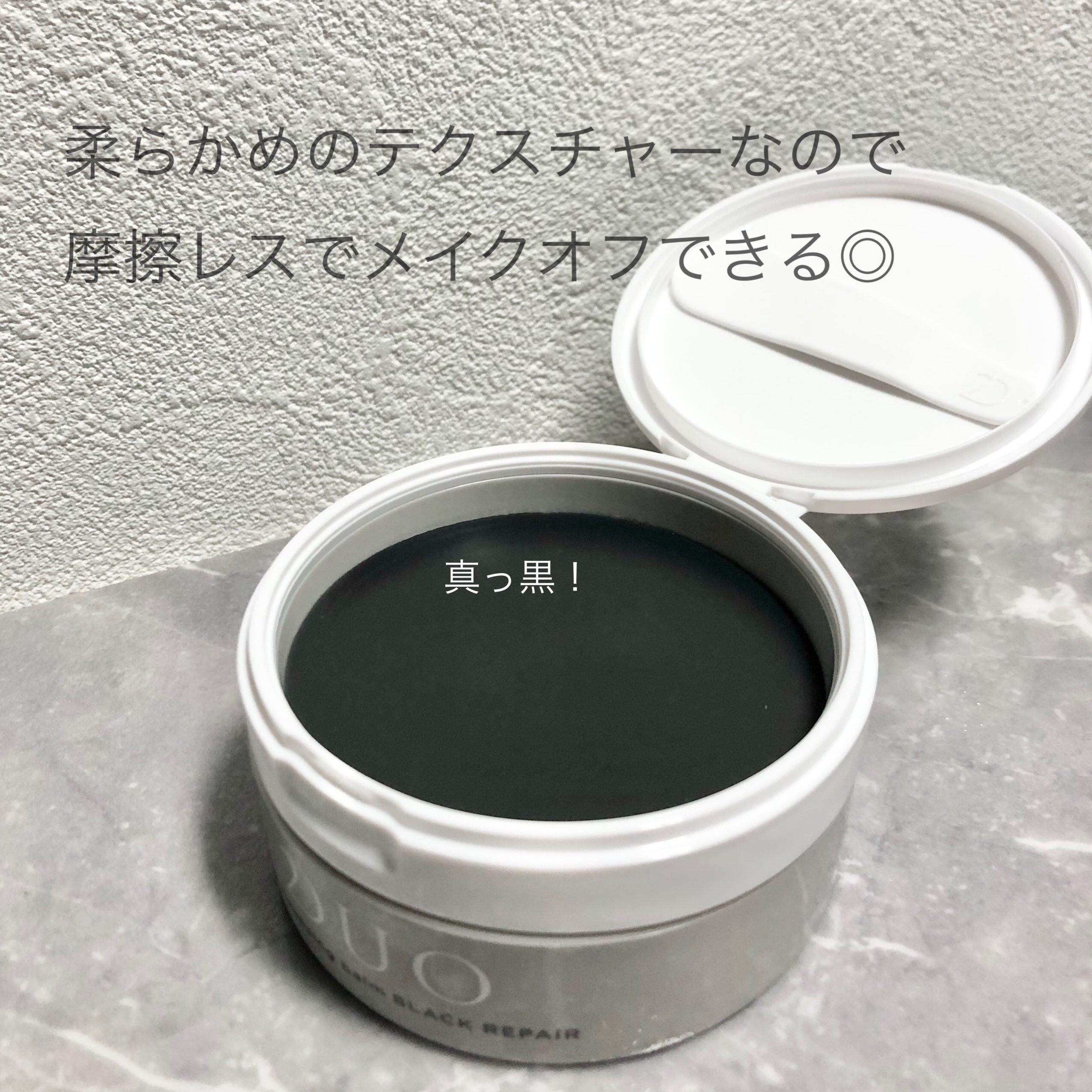 DUOのクレンジングがパワーアップしてリニューアル! ブラックリペアは毛穴の黒ずみが気になる人におすすめ。 柔らかいバームで肌に馴染ませるととろけてくれるテクスチャー。 洗い上がりはしっとりしていて乾燥する今の時期にもうれしい使用感! すっきりとした香りもよかったです🖤