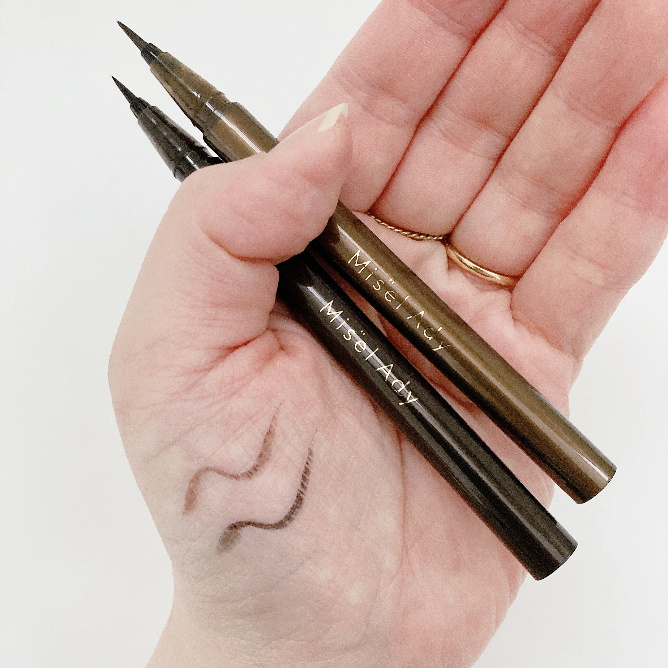 ちょい透けブラックちょい透けブラウン#ちょい透け発色がキーワードのリキッドアイライナーちょい透けブラック/ちょい透けブラウンともほんのり柔らかさのある発色です筆先は程よいしなり具合密着力のあるところや発色が柔らかくキレイなところがお気に入りで...