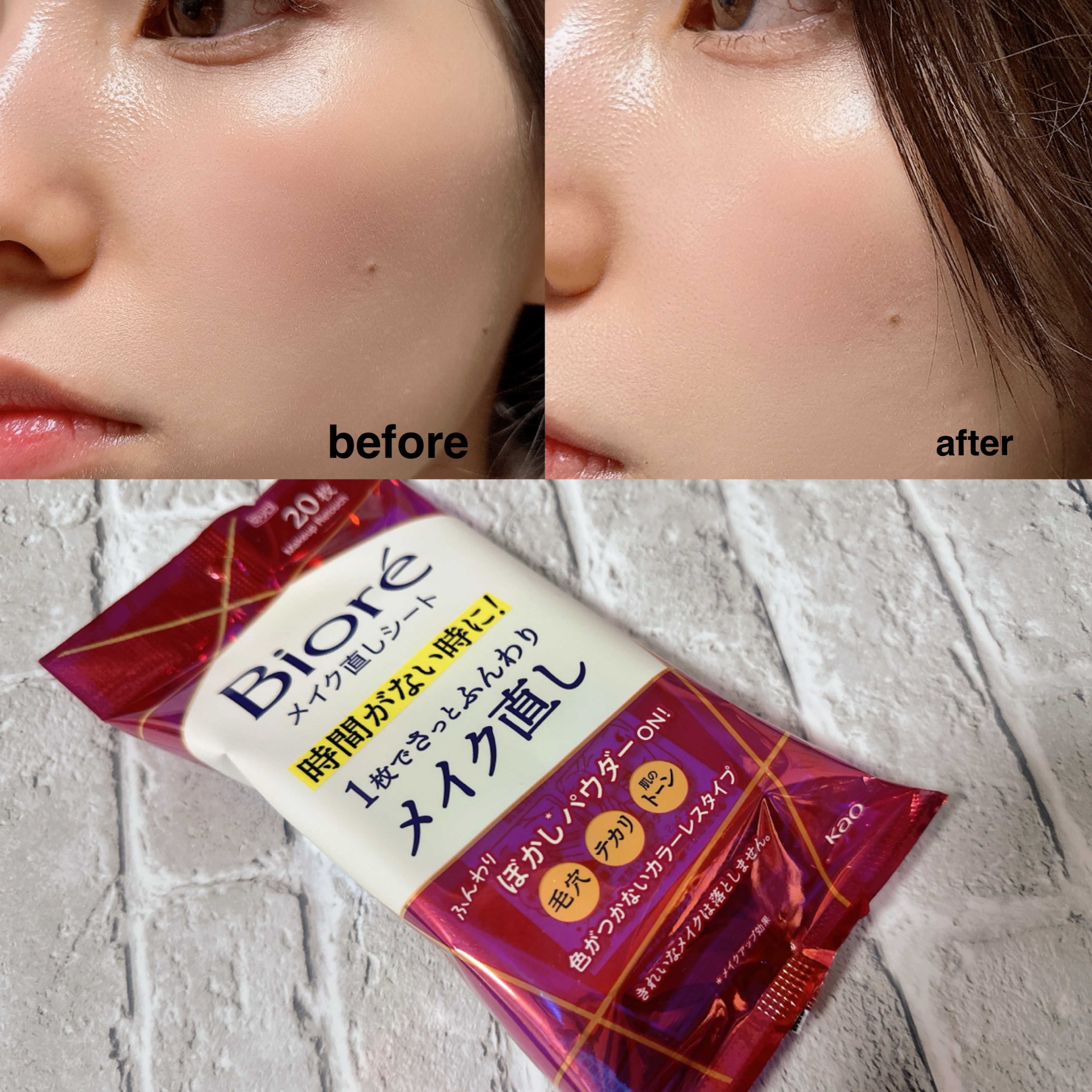 1枚でさっとふんわりメイク直し メイクの上から押さえるだけで、ふんわりぼかしパウダーが肌の上にオン 毛穴、テカリ、肌のトーンなど日中気になってくるメイク肌をほどよくぼかします。 こちらである程度ヨレを直してクッションやパウダーで整えるとまあまあキレイに直せます。