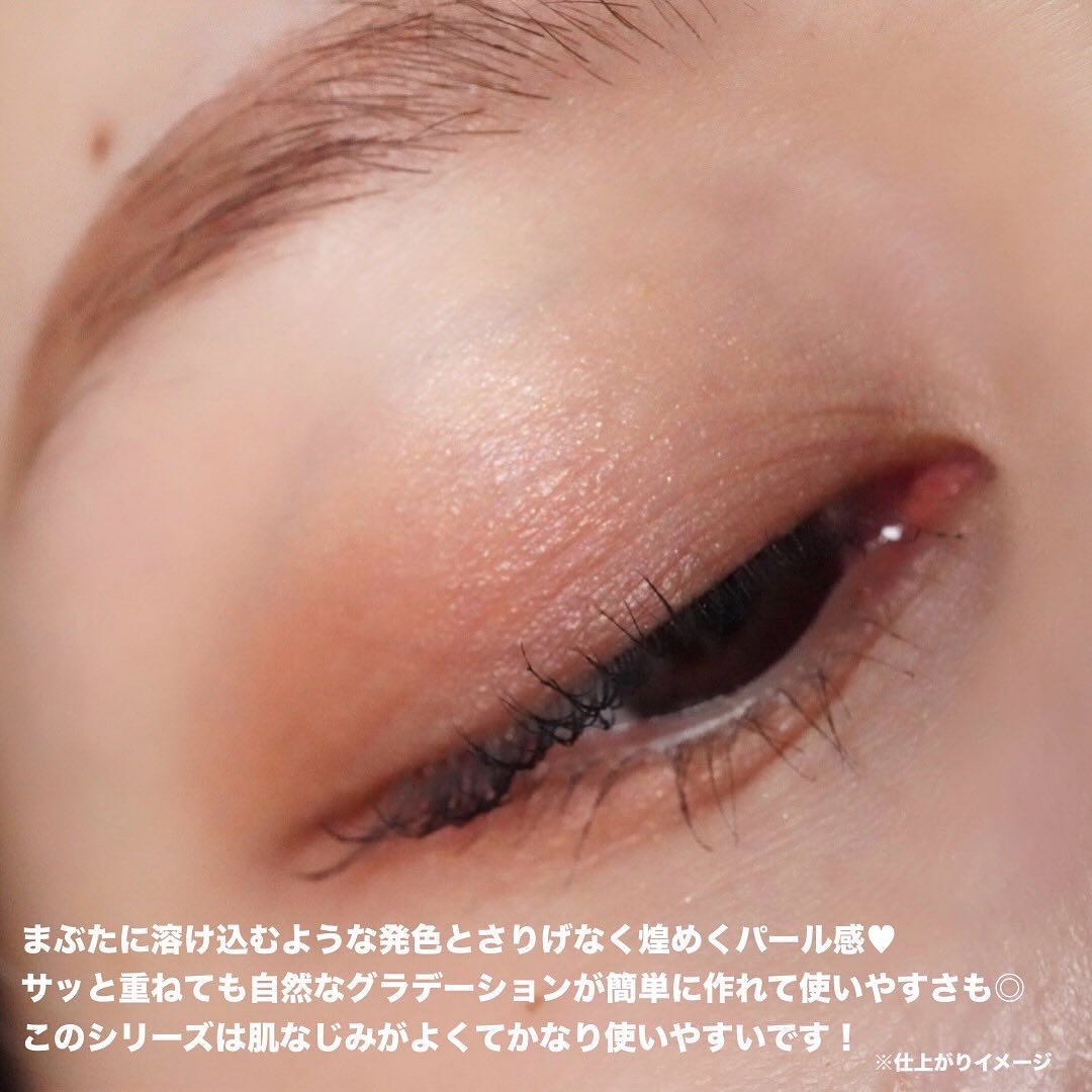 よくパレットのなかで明るいカラーをベースにまぶたに広く塗ることが多いのですが、パール感のあるカラーを避ける🙆♀️! パール感たっぷりの明るいカラーは涙袋に使うぐらい光を集めてぷっくり見せてくれるので、まぶたに広く使うと腫れぼったく見えがち😓 目元を明るくみせてくれたり、次に使うアイシャドウをぼかしやすくしてくれるけど、すっ飛ばしてメインのカラーを塗っちゃう✊🏻❤️🔥 涙袋にはたっぷり塗ってぷっくり見せる🙆♀️💕 シルキースフレアイズのマットタイプはすごく優れているな〜と感じました☺️💗 赤やオレンジなどは、入れすぎると腫れぼったく見えやすいので、見せたいカラーは下まぶた目尻にのせて色をたのしむ♡♡ パール感なしの透けマットだけじゃ物足りない… そう感じさせない華やかなラメが左上に入っているので黒目上と涙袋にのせるとすごく可愛い仕上がりに😍! 厄介な左右差のお陰でマットアイシャドウが好きになりました😌💕