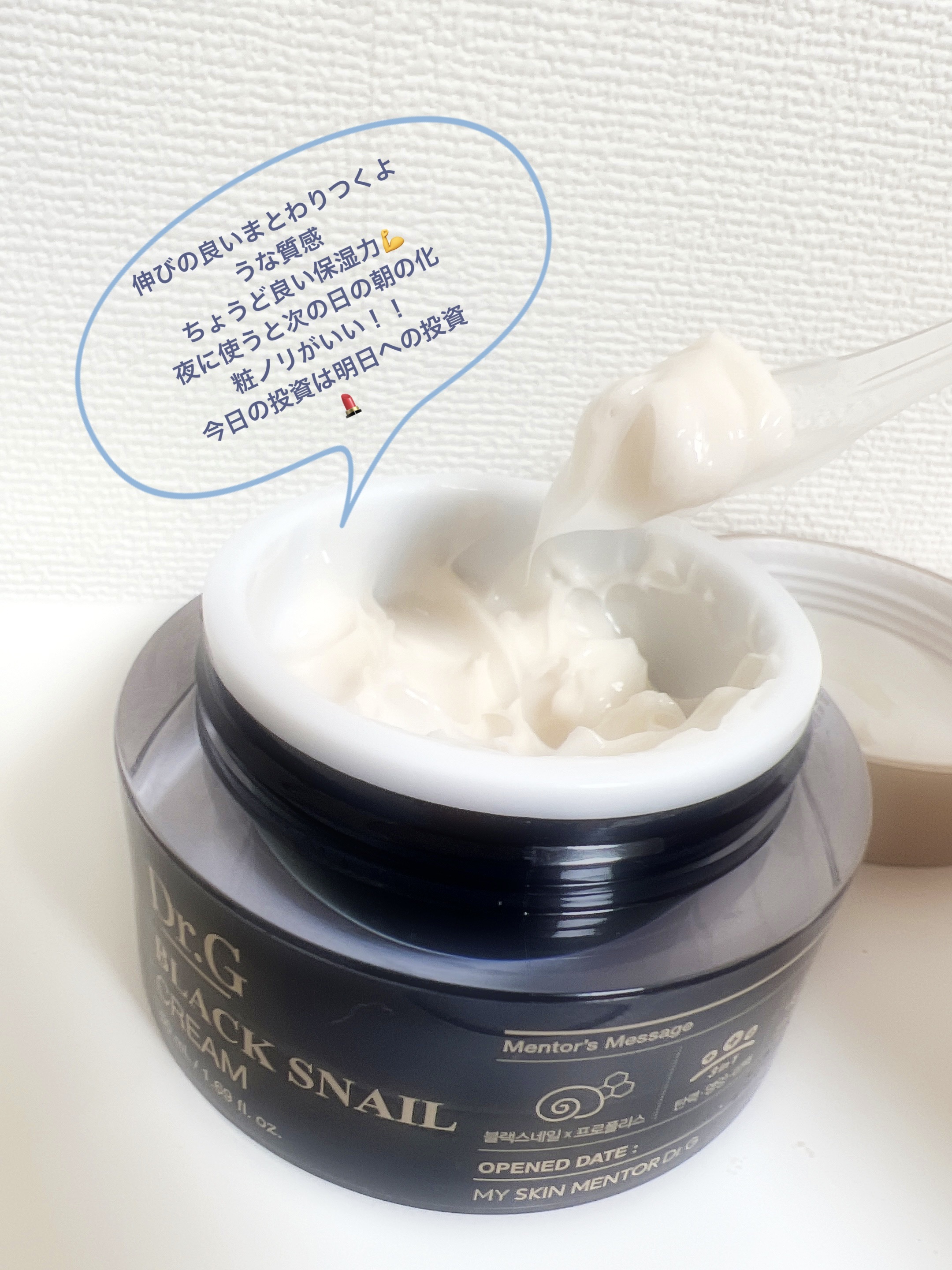 - 保湿だけでなく、透明感*1、ハリ、弾力のケアまでできる、クリームです。 ブラックスネイル*2を20%配合し、さらにブラックプロポリス*2を配合しているので、エイジングケア*3に必要な潤いをしっかりと肌に与え、もっちりと潤ったお肌に導きます。ナイアシンアミド*2やツボクサエキス*2なども含まれているので、様々な保湿ケアに対応できるため、肌の健やかさを保つことができます。 *1艶やかな肌印象のこと *2整肌成分 *3年齢に応じたお手入れ