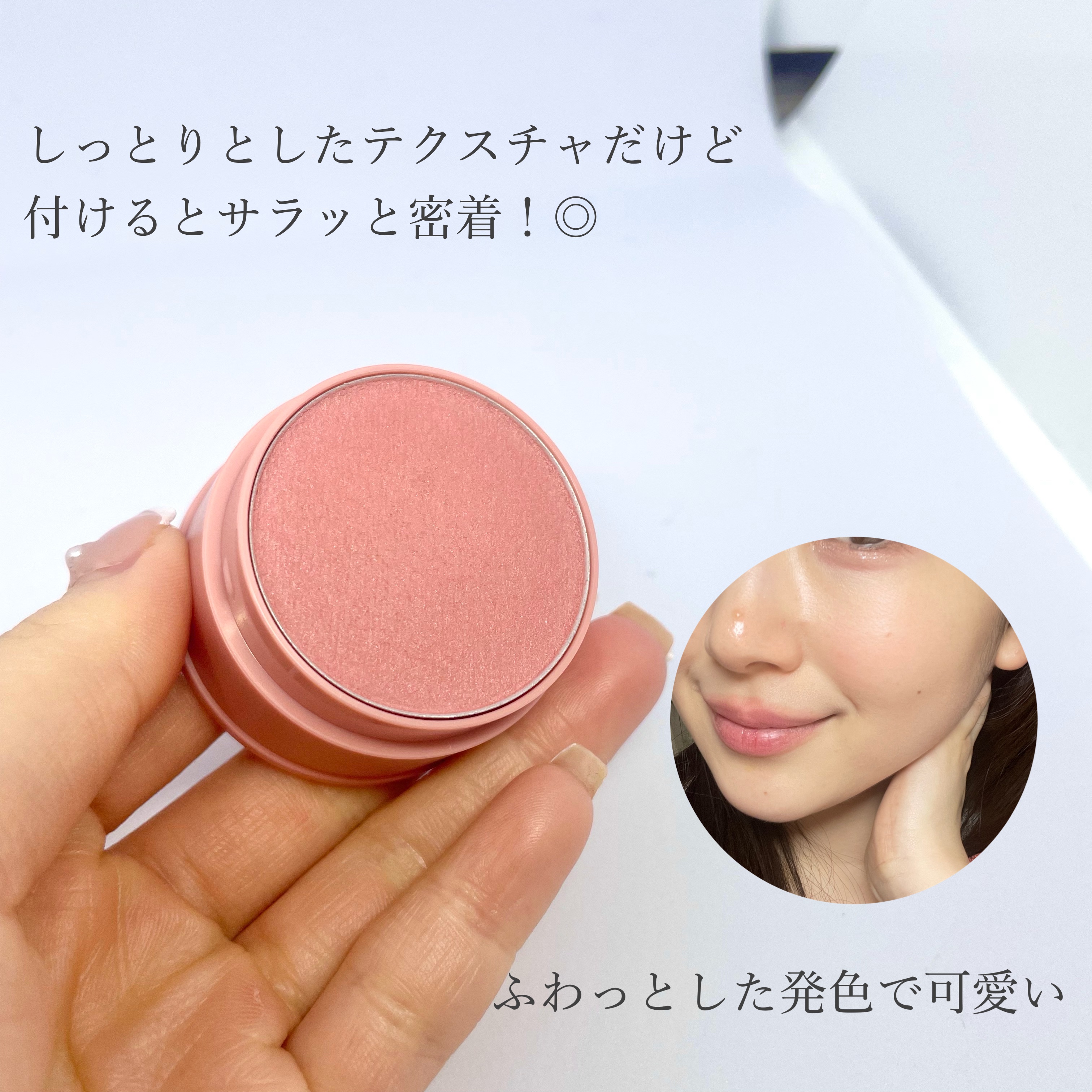 見た目も中身もとっても可愛いぷにぷにチークです🎀 白みも青みもあるピンクで、塗るだけで美少女感を演出してくれます💓 もちもちで厚みのあるパフが付属しているから、持ち運びにもぴったりです🥰 付属のパフでぽんぽん塗るだけで、簡単にふわっと色付いてくれます🌸 しっとり密着してくれるので粉っぽさは感じませんでした🫶🏻 パケも色味も本当に可愛くて好みなので、これから愛用していきます😽💓