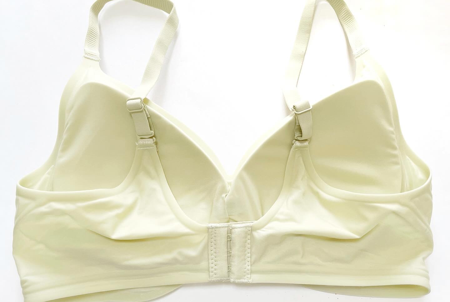 シームレスでとろんとした質感が心地好く、着けているのを忘れてしまうくらいの軽さにビックリ😳 ノンワイヤーなのに自然なホールド力 ホックとストラップで微調整が可能!バストと脇肉・背肉をしっかり包み込むので横になっても崩れ&横流れにくい設計です💡 着心地、肌ざわり、寝心地、自然なホールド力が揃っているから昼夜関係なく着けていられるのも魅力的💮 ナイトブラが合わなくて横になるとズレたり崩れたりする事が多かったのですが、高い伸縮性で体にフィットしてとても着心地が良いです✨ カラーもブラック、ピンク、グリーン、ブルーの4色あるので洗い替え用に他の色も欲しくなりました💗