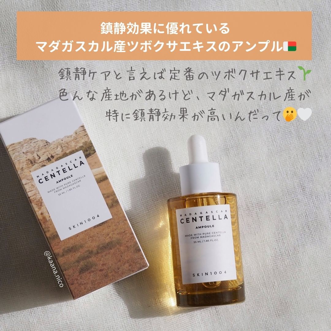 こちらの美容液は、太古の自然マダガスカルの自然由来ツボクサエキスを100%配合し刺激を受けた肌を鎮静させる効果があります。 私みたいに季節の変わり目や、ホルモンバランス・食生活の乱れ、ストレス等でお肌が敏感になりやすい方にめちゃくちゃオススメです🤭👍 使用感は、とてもさっぱりとしていてベタつきがないもののしっかり保湿してくれる感はあるのでメイク前にも使いやすい印象です♪