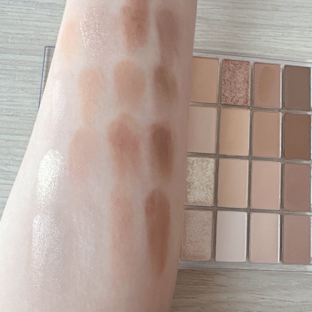 マット、シマー、ラメ、グリッターと、多彩なテクスチャーで自分だけのメイクを演出するマルチパレット。 あたたかみのあるブラウンパレット 組み合わせ自由で、困ったときは縦の段4色を使うと綺麗に仕上がります🫶 粉質も申し分なし🙏どちらかというと薄づきですが、マルチに使えるのでお値段以上の働きをしてくれます(`・ω・´)