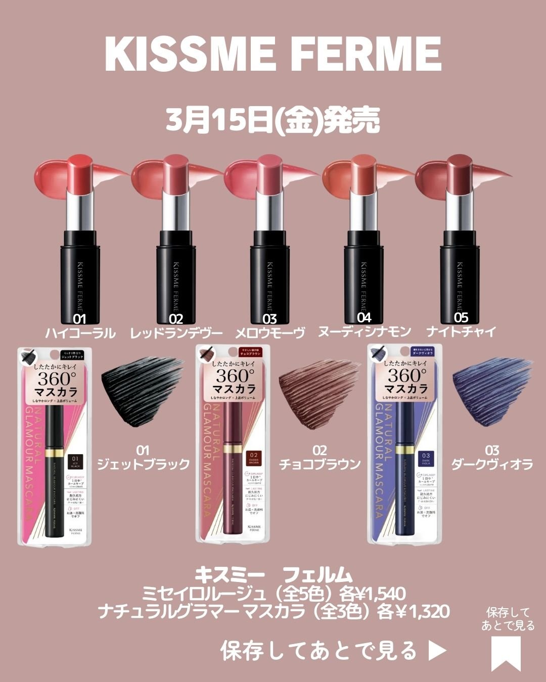 キスミー フェルム キスミー フェルム ナチュラルグラマー マスカラ | 1,320円 |