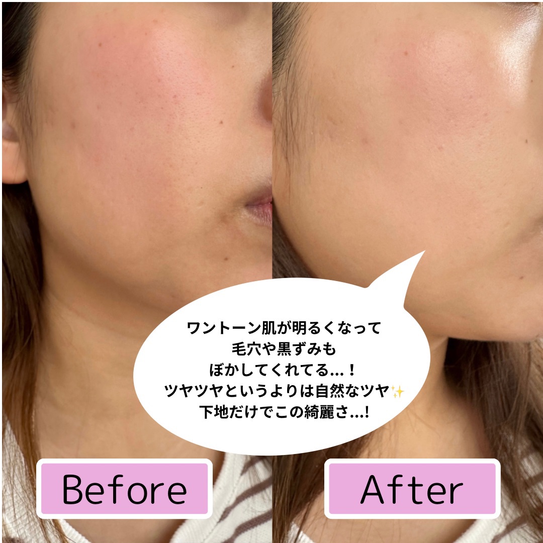 肌がワントーン明るくなってトーンアップ効果が高い下地𓂅本当にみずみずしく伸びが良くて、ワンプッシュだと全顔塗るには多いぐらい 仕上がりはややしっとりしてるけど、ベタつきはなくて薄い膜を張った感じ❣︎ こちらはコクのあるクリームで黄みのあるベージュカラー𓇢艶も残しつつ肌を均一に見せてくれて、厚塗り感なく程よくカバーもしてくれた✨ ちょっとしたお出かけぐらいならこのベースだけでも大丈夫かな🙆♀️ しっかり密着してくれてマスクにも付きにくかった! 脂性肌におすすめだけど、乾燥肌のわたしでもそこまで乾燥は感じなかったな!