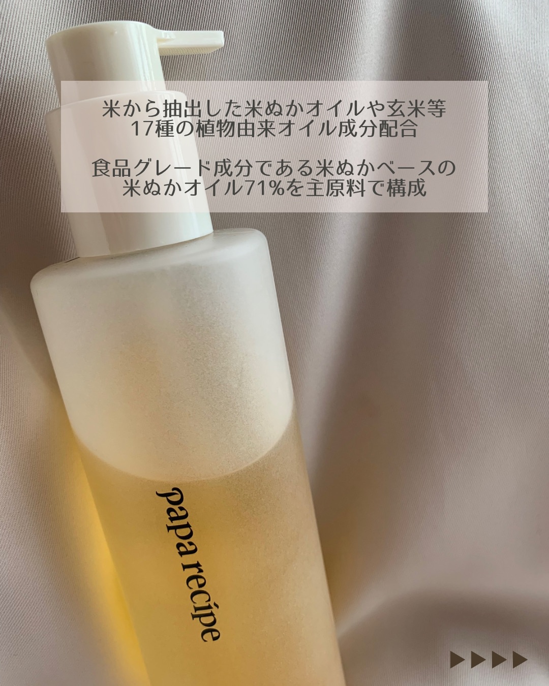 古い角質を落とすケア、毛穴ケアには酵素パウダー洗顔が良いっていうのは知ってたものの実は酵素洗顔初めてでした😳 このパパレシピの酵素パウダーは米粉が入っていて保湿しつつ洗顔出来るみたい🌾 実際に手に取ってみると、穀物っぽい香りする! クレンジングオイルも米ぬかオイルと呼ばれてるマイルドなオイル🌾 ダブル洗顔不要とのことなのにすごく大容量でコスパ◎