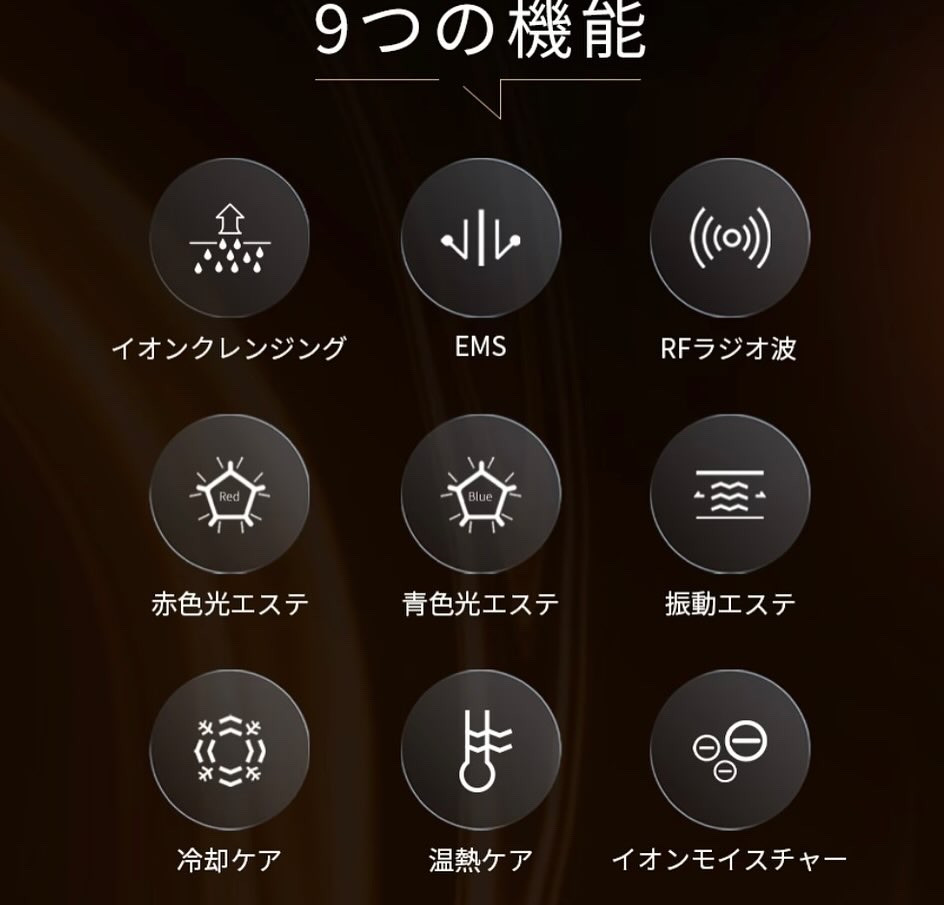 - 18金プレートを採用し、同時にRFラジオ波のエネルギーの効率化を追求しました。敏感肌の方でもお使い頂けます。 エステ級の5つの美肌モードを搭載し、自宅に居ながら年齢肌に負けない、若々しい印象の輝く艶肌をサポートします。