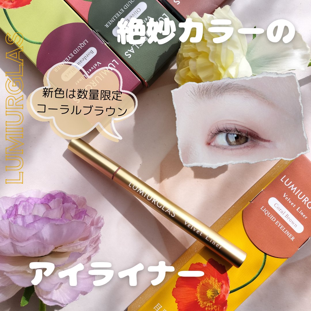 ルミアグラスさまからいただきました𓂃𓈒𓏸𑁍⋆⋆商品特徴▷▶ルミアグラス史上最も描き心地にこだわった「ベルベットアイライナー」。京都産シルク※配合でなめらかに肌になじむから、目頭から目尻までスルッとラインが描けちゃいます。乾きが早く長時間にじみ...