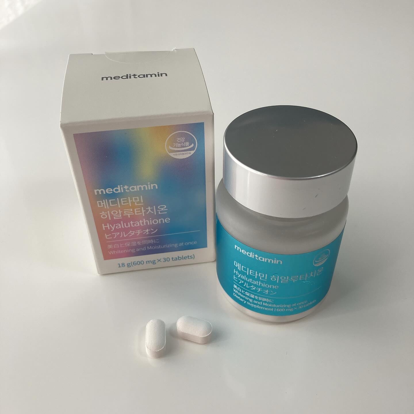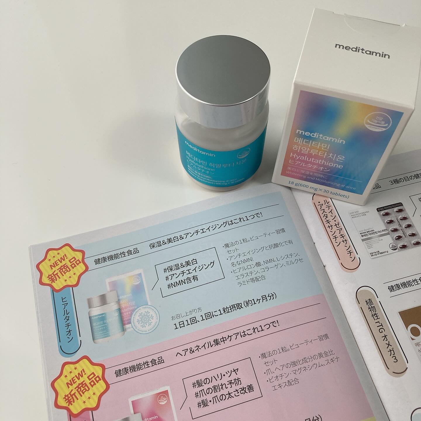 1日1粒ズボラでも続けやすいお手軽サプリ💓 メディタミン ヒアルタチオン 🤍ヒアルロン酸、グルタチオン、NMN。 🤍ビタミンC、Lーシスチン、エラスチン、コラーゲン、ミルクセラミド、ドクダミエキス粉末まで配合🙌 韓国発の美容サプリ🇰🇷 約1ヶ月分なので容器はけっこう小さめ!