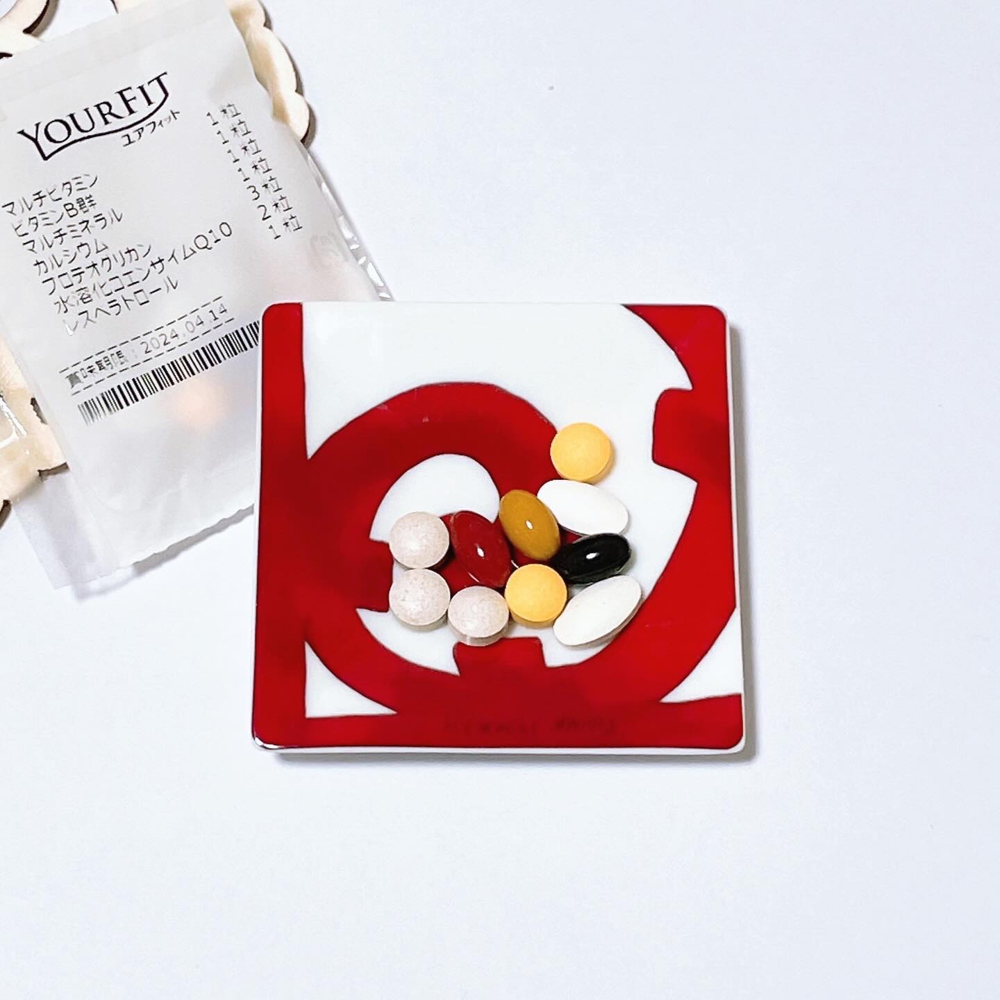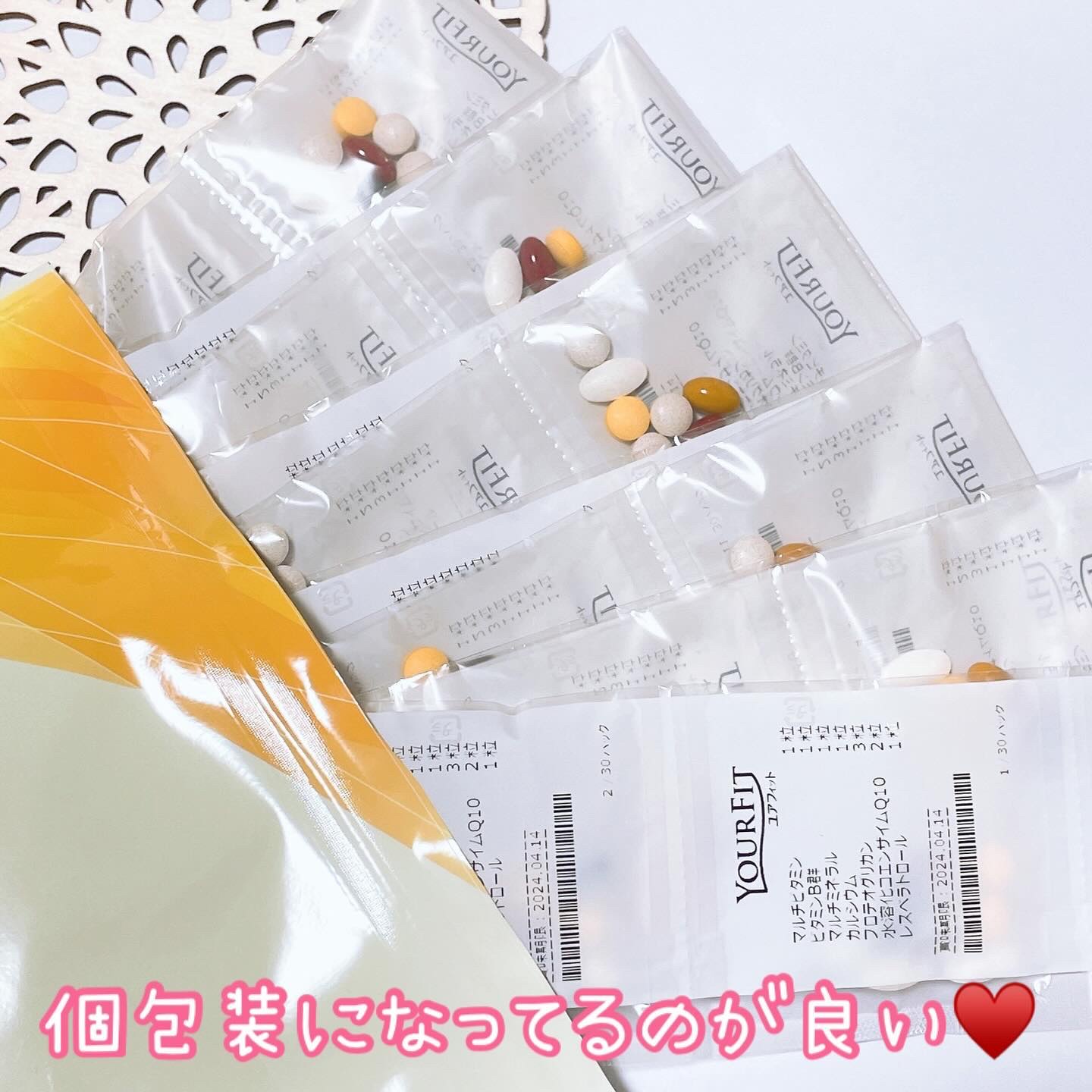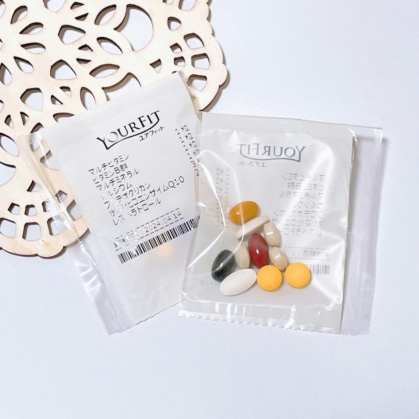 簡単なアンケートに答えていくだけで、自分の栄養状態(なにが不足してる・なにを摂取し過ぎてる)を分析して1人1人違うサプリメントを組み合わせてオリジナルのものを紹介してくれます。 実際に届いたものは1日分ずつ包装されているので、数種類飲むのに手軽で時短でした! サプリを数種類飲むときに、いくつもボトルやパウチを開け締めするのは面倒だったので「YOURFIT」は良かったです😊 1つ1つの効能が詳しく説明されていたり、アンケートに基づいた生活習慣や食についてのアドバイスもしてくれるのが勉強になりました。