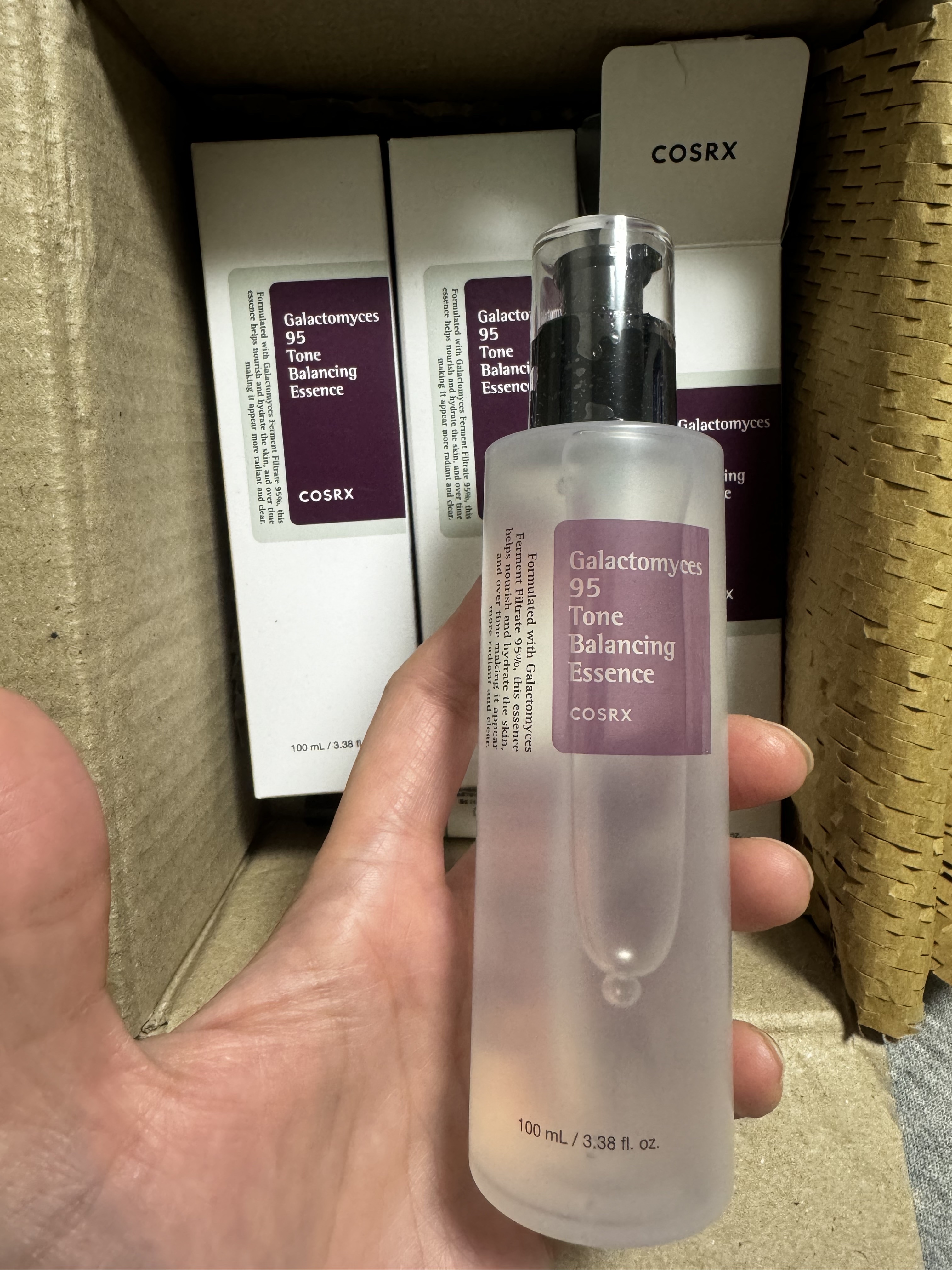 COSRXのガラクトミセス95トーンバランシングエッセンス🤍⠀少しとろみ系のテクスチャーで肌なじみ◎⠀私は4プッシュとたっぷり使ってる🙌🏻💗⠀少しでも肌の透明感アップするといいな🥺⠀化粧水だけどストックたくさんあるので導入として使う予定✌️✨...