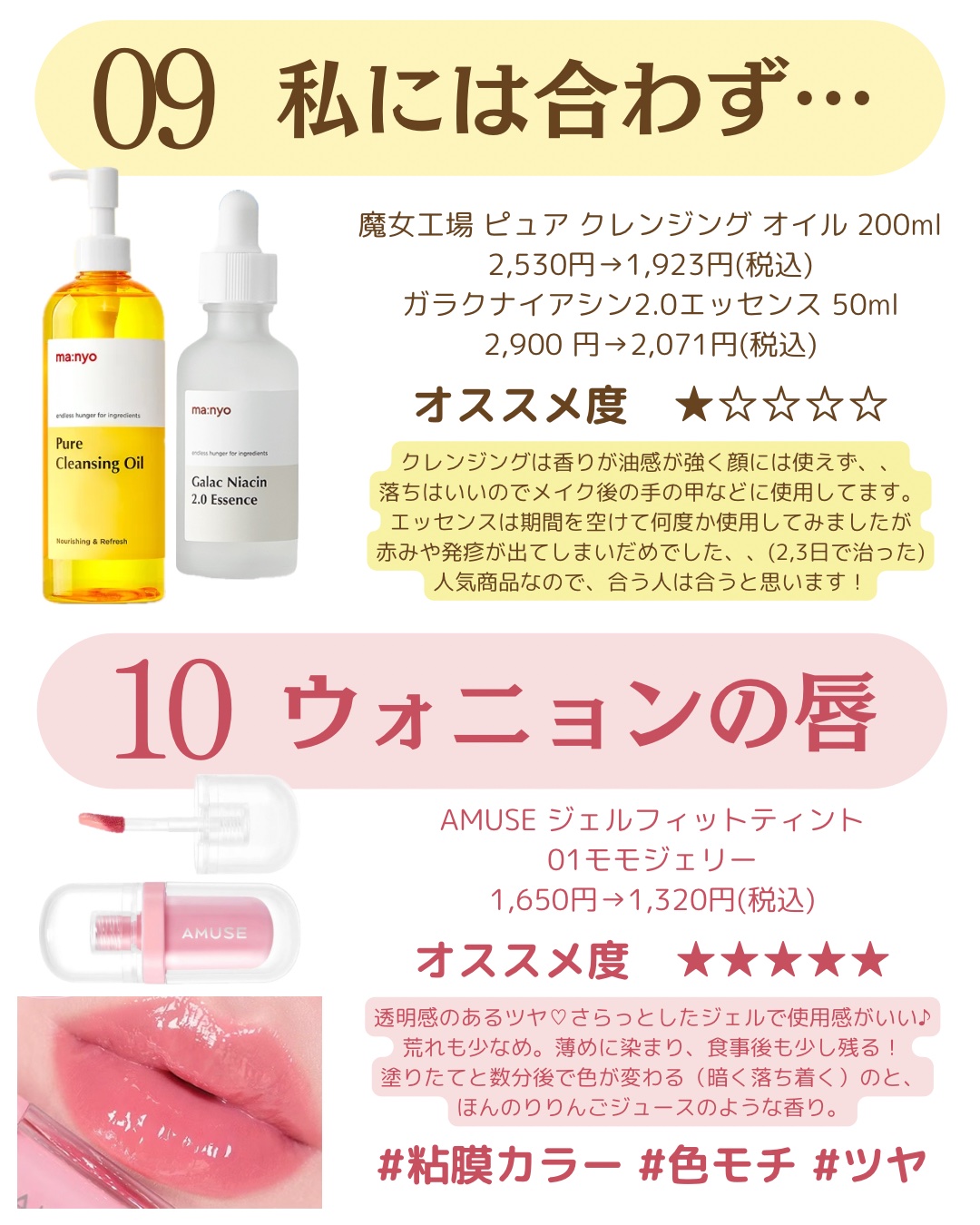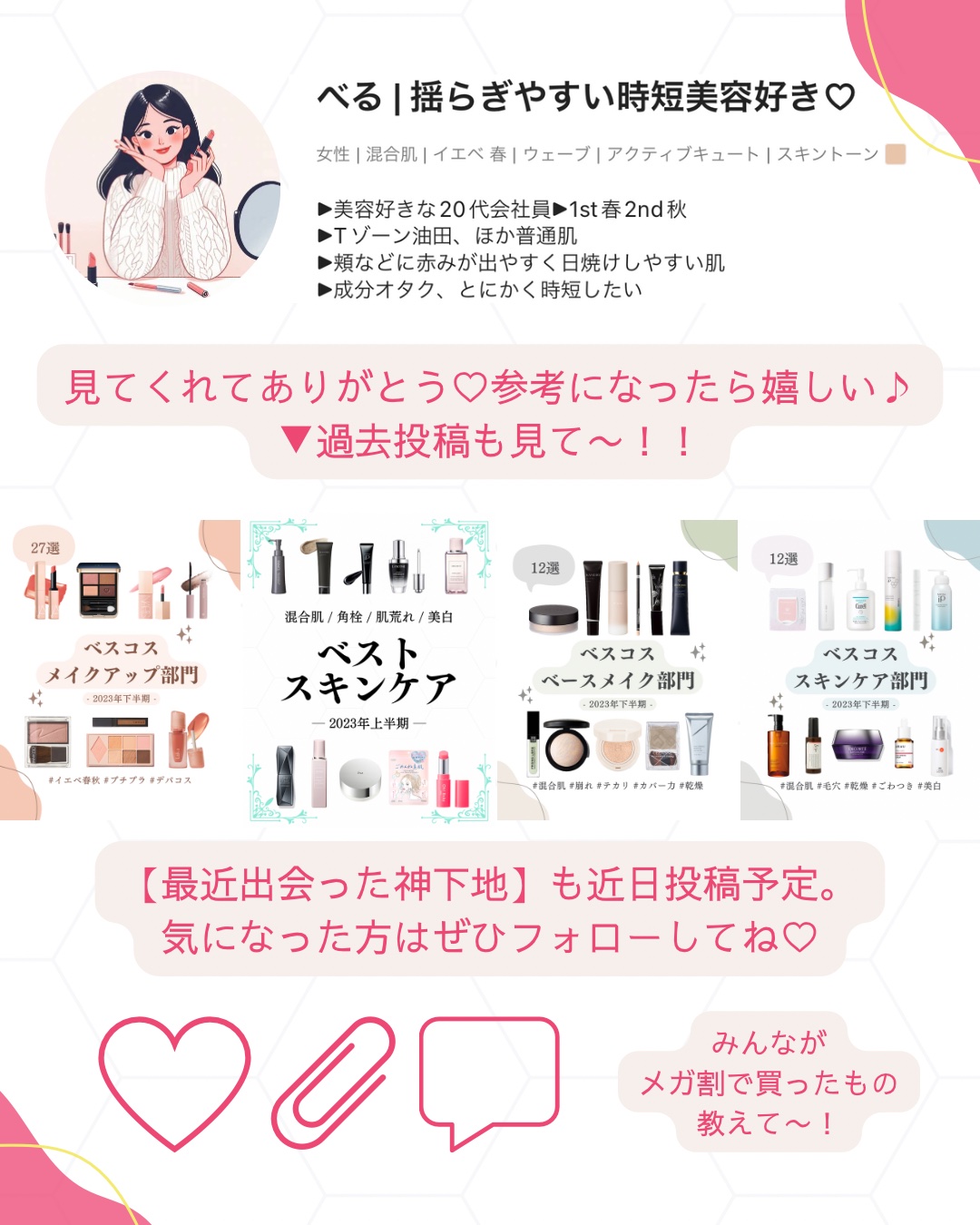 無印同様、一度使っただけで目に見えて違いがわかって感動した! 厚みがあって洗い心地も良い◎ つぶつぶしたスクラブが入ってて洗うのが楽しい♪ 週に1〜2回使用するとTゾーンがさっぱりして、毛穴づまりがぐっと気にならなくなりました! 保湿感もあるけどさっぱりしてて好き♡ しゃばしゃばでクセがないテクスチャー 美肌糖のおかげか肌荒れしにくかった! 美白有効成分、コウジ酸を初体験。 さっぱりめで化粧に響かないので朝に使用。 高保湿のあまりぬるぬるになりますが、夜使うと翌朝肌がふっくらします。 美白有効成分の4MSKと肌あれ防止有効成分の酢酸DL-α-トコフェロール配合。 液はひたひた、シートは厚めで肌にフィットするベンリーゼ素材。 ほんのり甘いバニラミントの香り。 和三盆シュガースクラブを配合しているそうで、レブロンよりスクラブが優しい気がする◎