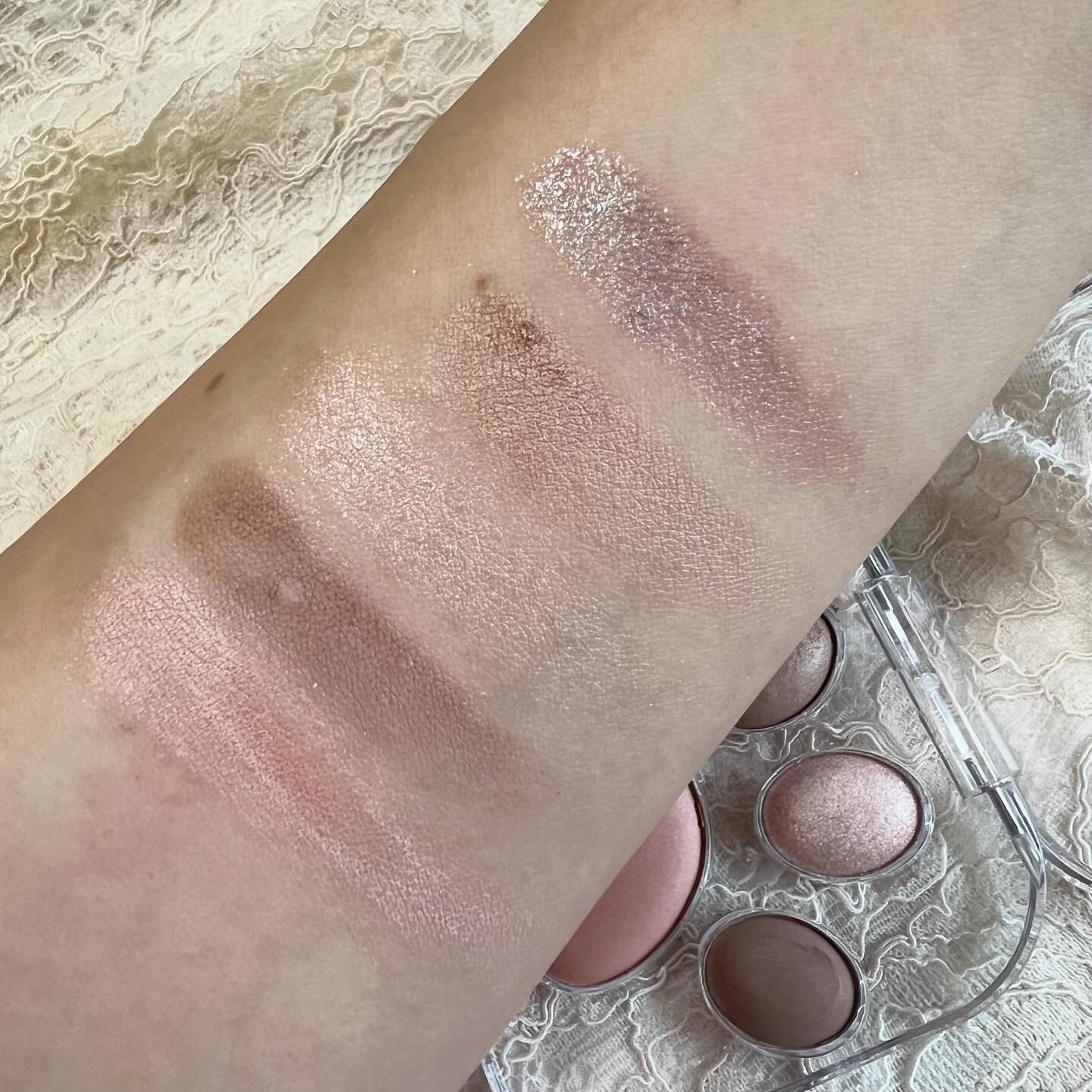 ベースカラー、締め色、ラメがそろったかわいい5色パレット💕 見た目の可愛さだけじゃなくて機能性も◎❣️ 発色が想像以上に良くて見たままのカラーでメイクできるのが楽しい♥️ 気まぐれ猫ちゃんのような女の子におすすめ🐱ฅ