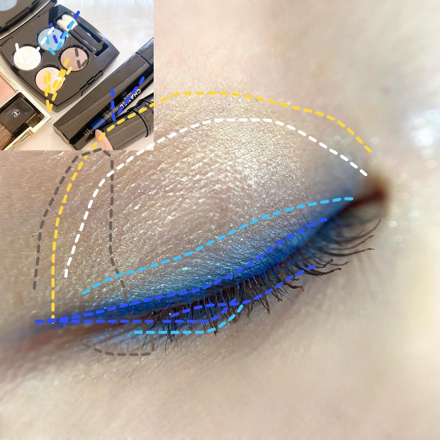 .✔︎CHANEL #レキャトルオンブルブトン ∟229ブトンステレール.209・219よりキラキラしててシルバーブルーとコッパーの組み合わせが今の季節にぴったり🧡🩵今回は目頭にシルバーブルーをつかったけど二重幅に使うのも可愛かった!.@ch...