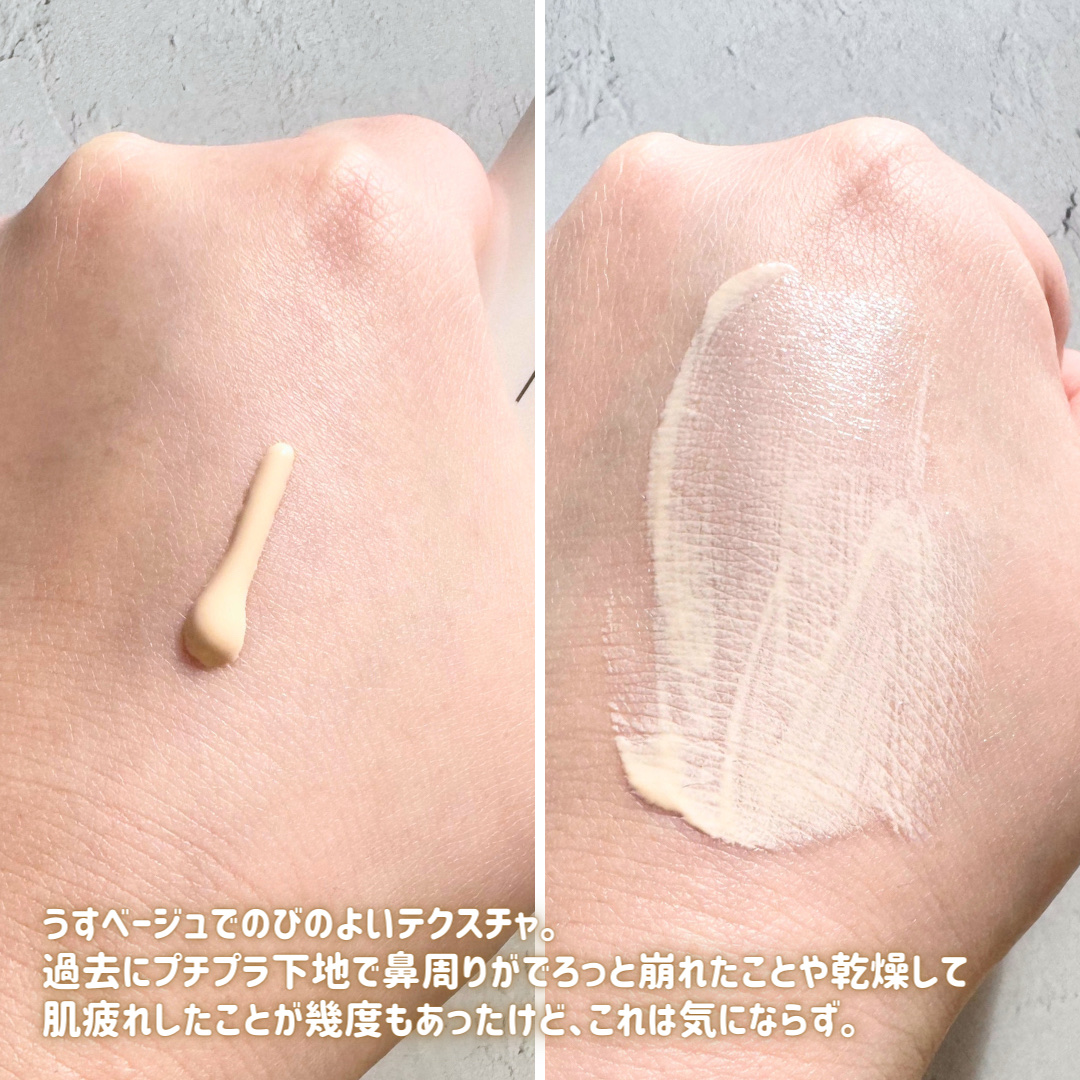 素肌感・ツヤ感えげつない下地🩷 これがプチプラだと??/ 美容液が89%も配合されてるだけあってテクスチャーはみずみずしく心地いい♡ これで1本1,980円ってマジすか? デパコスなみの満足度なんですけど、、、🥹