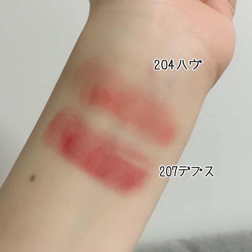 輝くガラス玉のような光沢と、 水彩画のように淡く残る色彩のグロウリップスティック。 唇に触れた瞬間、体温でとろけてするすると塗れるテクスチャです。 滑らかに唇に馴染んで密着し、輝く光沢感を残しながらもベタつかず、しっとり感のある仕上がりに。 203マークを買ってみました♡ 良い感じ*ˊᵕˋ*
