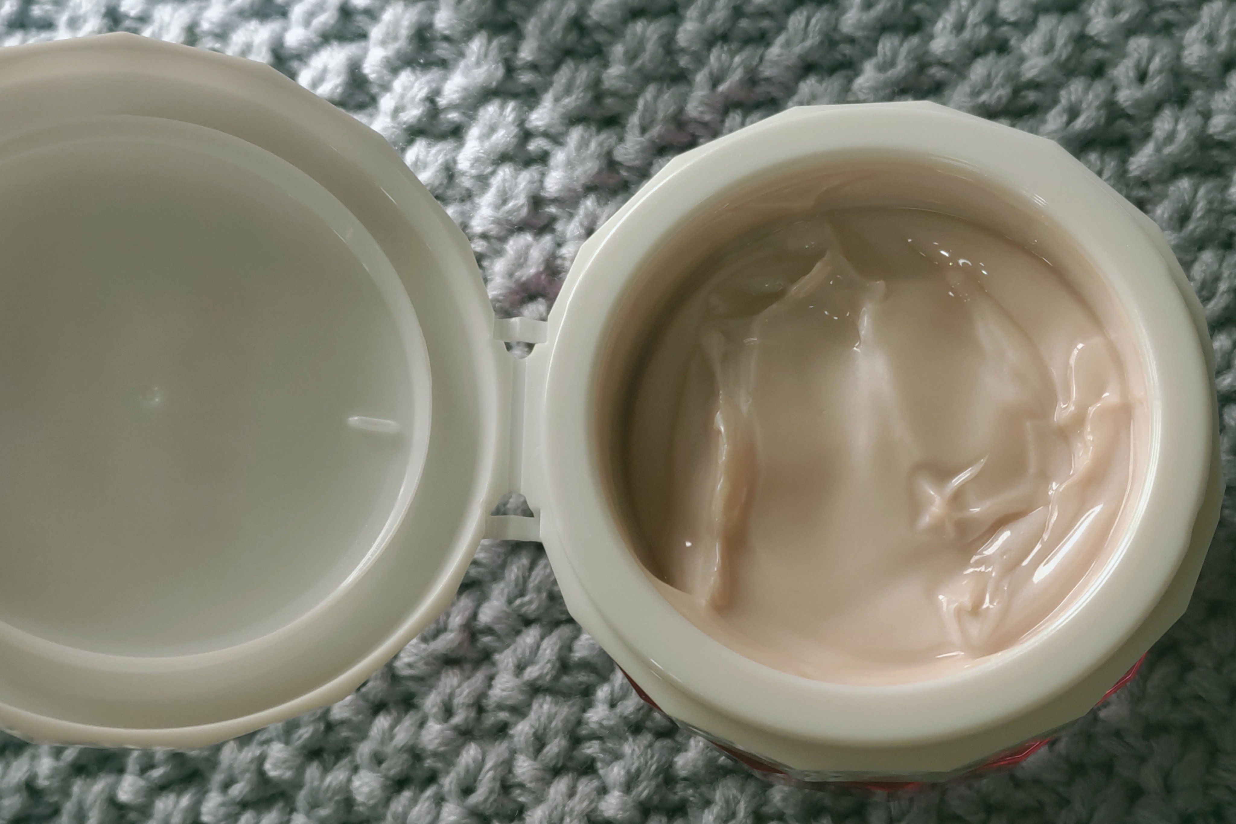 パールピンクのコックリクリームでパウチのわりに?量がとても少なく感じそのせいか伸びは悪い印象。 肌になじんだら、サラしっとりって感じでベタベタは無し。少しだけつっぱるような気も… 痒み等のトラブルが無かったのは良かったです★ 部分的に使えば良かったかな…