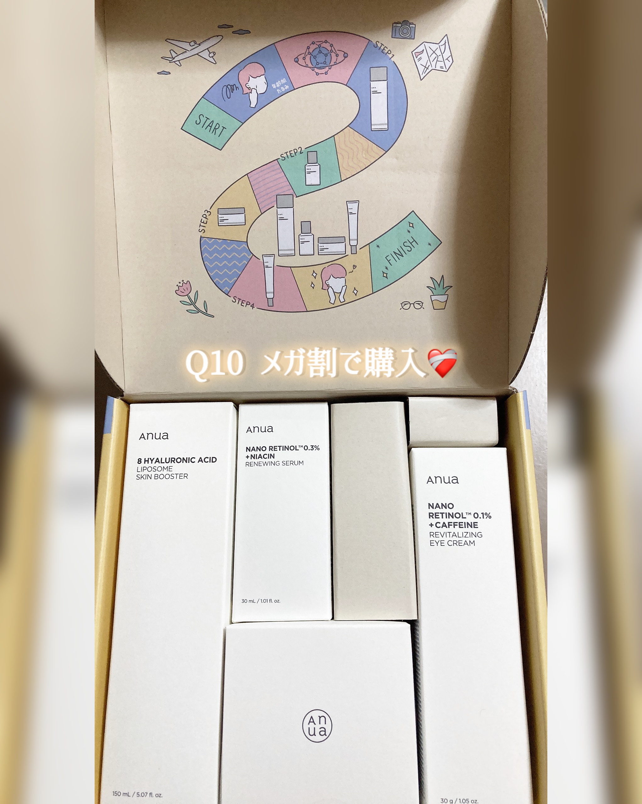 アヌアのレチノールライン大好き💜今回の【心弾む夏のかけら】でもレチノールセットを購入しました🌟アヌアさま、いつもギフトもたくさんありがとうございます😂🧴商品名:Anua8ヒアルロン酸リポソームスキンブースターレチノール0.3ナイアシンリニュー...