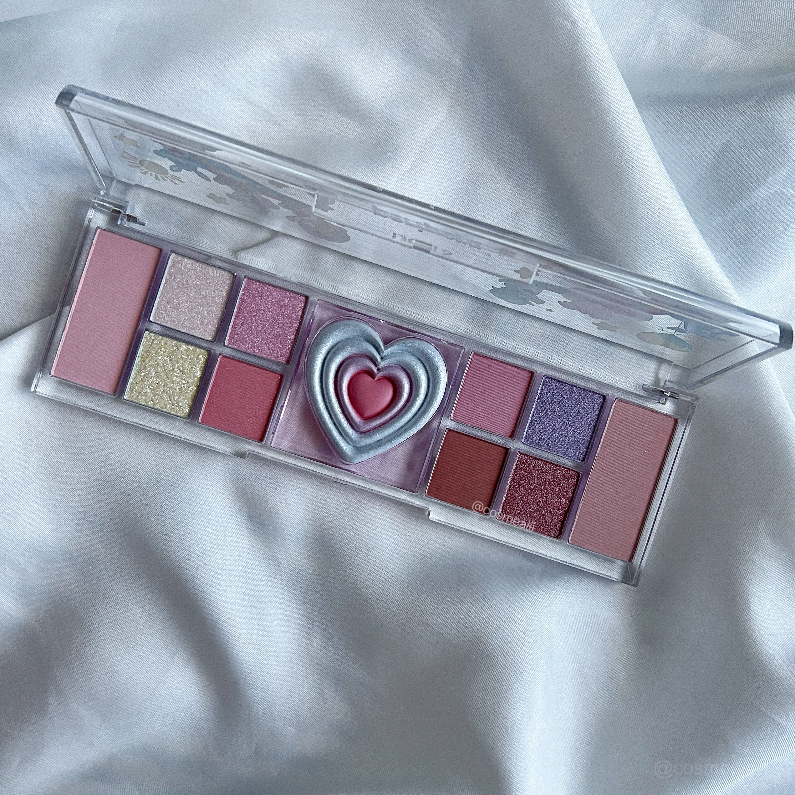 - シャドウ+チーク+ハイライター=自由自在♡ パレット1つで多彩なメイクを楽しんじゃお♥ その日の気分やファッションに合わせてメイクアップ可能! なりたい自分、理想のメイクが楽しめるパレット!誰でも簡単に自分だけのムードが作れる! <01 プレステージ ピンク(PRESTIGE PINK)> 無邪気な可愛らしさ満載のピンクパレット 立体的なハート型のハイライターが透明感を引き立てる! <02 ピーチ ヘブン(PEACH HEAVEN)> ナチュラルで肌馴染みのよいピーチパレット 立体的なハート型のハイライターが透明感を引き立てる!