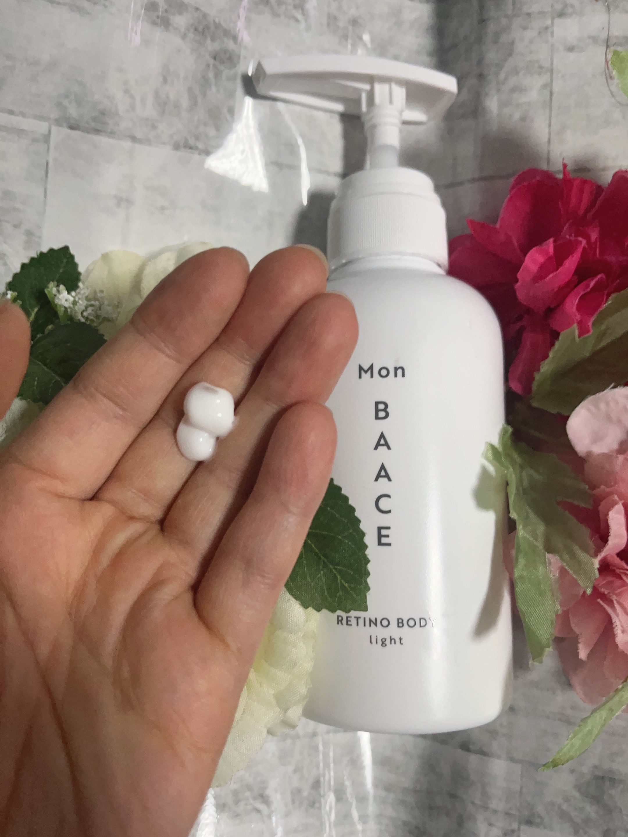 MonBAACE様よりRETINOBODYlight提供いただきました✨レチノール配合のボディ専用クリーム。こっくりめのテクスチャー。固め?と思ったけど肌に伸ばしやすくみずみずしい仕上がり。ポンプの押すところが大きめで使いやすい︎︎👍ボディク...