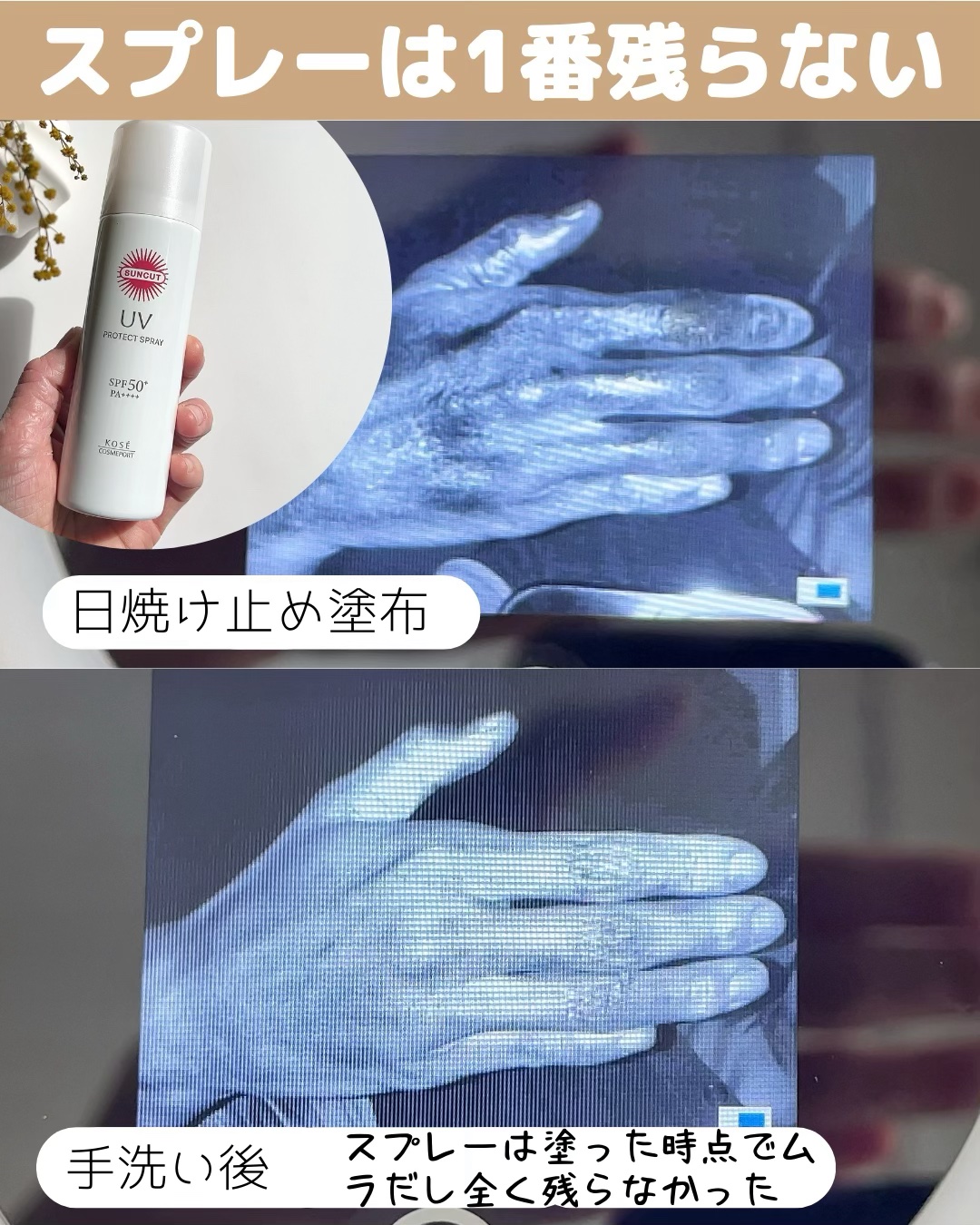 | 日焼け止めミスト・スプレーランキング第28位 | メイクをした上から使える日焼け止めスプレー。速乾でサラサラ、専用クレンジング不要! | 詳細を見る |