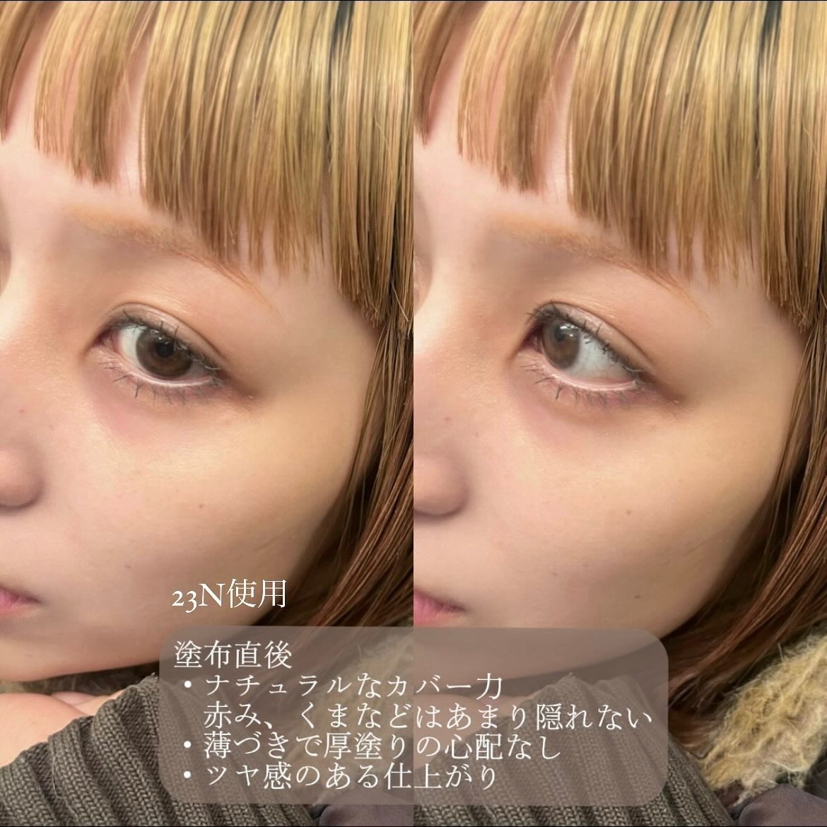 - <21号> 精製水、アジピン酸ジブチル、酸化チタン、プロパンジオール、サリチル酸エチルヘキシル、ホモサレート、エチルヘキシルトリアゾン、変性アルコール、サリチル酸ブチルオクチル、ナイアシンアミド、ジエチルアミノヒドロキシベンゾイル安息香酸ヘキシル、(カプリル/カプリン酸)ヤシアルキル、1,2-ヘキサンジオール、トリ(カプリル酸/カプリン酸)グリセリル、パンテノール、カミメボウキ葉エキス、ノウゼンハレン花/葉/茎エキス、ポリヒドロキシステアリン酸、ペンチレングリコール、イソノナン酸イソノニル、(ジグリコール/CHDM/イソフタル酸/SIP)コポリマー、シリカ、BG、ベヘニルアルコール、(アクリロイルジメチルタウリンアンモニウム/VP)コポリマー、(PEG-240/デシルテトラデセス-20/HDI)コポリマー、トリエトキシカプリリルシラン、水酸化Al、(アクリル酸Na/アクリロイルジメチルタウリン)コポリマー、ポリアクリレートクロスポリマー-6、ステアロキシヒドロキシプロピルメチルセルロース、ポリイソブテン、ステアロイルグルタミン酸Na、エチルヘキシルグリセリン、アルミナ、ステアリン酸、アデノシン、オレイン酸ソルビタン、(カプリリル/カプリル)グルコシド、セラミドNP、ポリグリセリル-3ポリジメチルシロキシエチルジメチコン、(サフラワー油/パーム油)アミノプロパンジオールエステルズ、コレステロール、トコフェロール、ラウリン酸K、ダイズステロール、リノール酸、リン脂質、カプリリルグリコール、酸化鉄 <23号> 精製水、アジピン酸ジブチル、酸化チタン、プロパンジオール、サリチル酸エチルヘキシル、ホモサレート、エチルヘキシルトリアゾン、変性アルコール、サリチル酸ブチルオクチル、ナイアシンアミド、ジエチルアミノヒドロキシベンゾイル安息香酸ヘキシル、(カプリル/カプリン酸)ヤシアルキル、1,2-ヘキサンジオール、トリ(カプリル酸/カプリン酸)グリセリル、パンテノール、カミメボウキ葉エキス、ノウゼンハレン花/葉/茎エキス、ポリヒドロキシステアリン酸、ペンチレングリコール、イソノナン酸イソノニル、ポリエステル-5、シリカ、BG、ベヘニルアルコール、(アクリロイルジメチルタウリンアンモニウム/VP)コポリマー、(PEG-240/デシルテトラデセス-20/HDI)コポリマー、トリエトキシカプリリルシラン、水酸化Al、(アクリル酸Na/アクリロイルジメチルタウリン)コポリマー、ポリアクリレートクロスポリマー-6、ステアロキシヒドロキシプロピルメチルセルロース、ポリイソブテン、ステアロイルグルタミン酸Na、エチルヘキシルグリセリン、アルミナ、ステアリン酸、アデノシン、オレイン酸ソルビタン、(カプリリル/カプリル)グルコシド、セラミドNP
