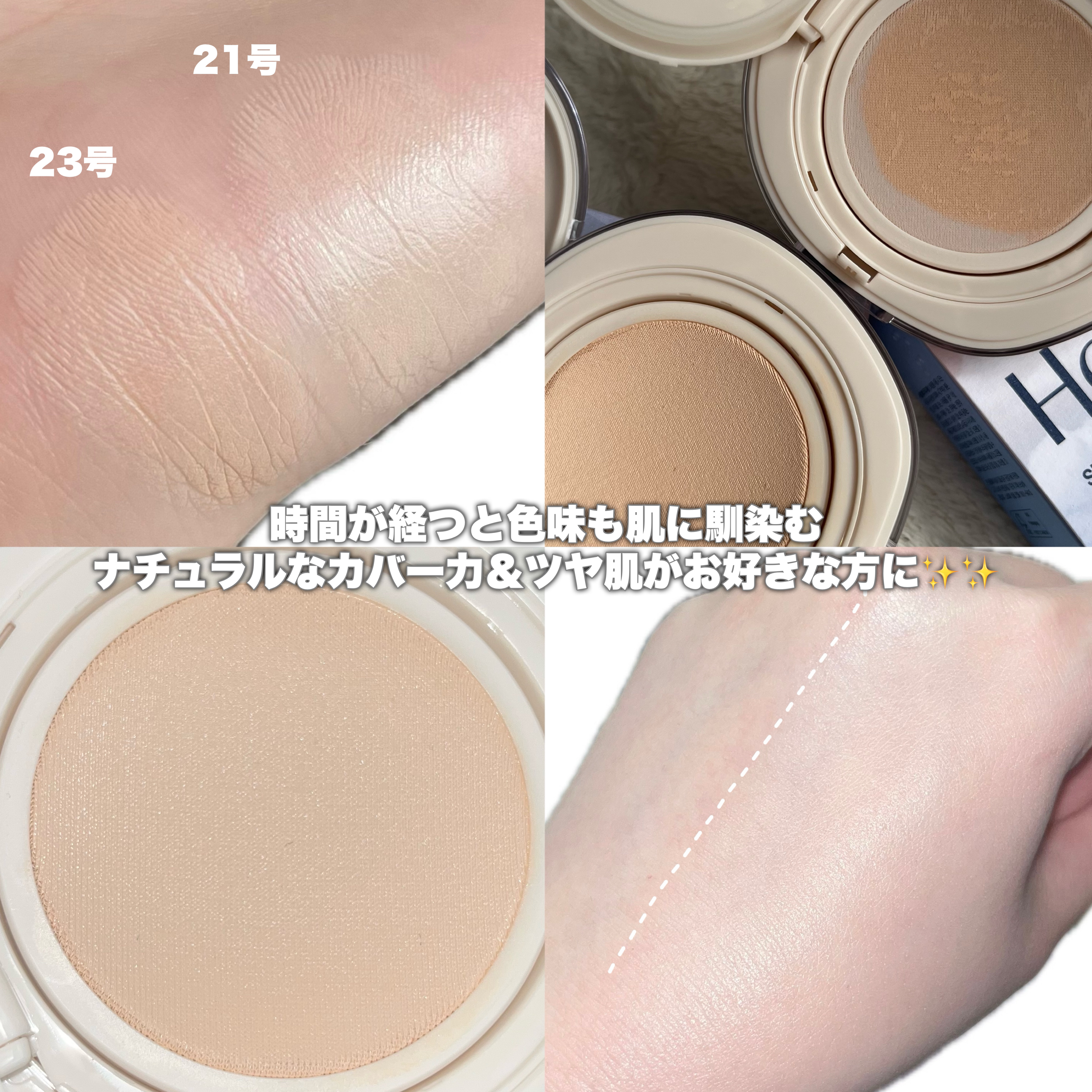 - テクスチャーは、肌が呼吸をするように、軽くて快適な、スキンブリージングテクスチャーです。 スキンケア成分を70%も使っているので、オイル感のあるツヤではなく、しっとりとして潤いが感じられる水分GLOWです。 光の屈折を利用して肌が輝きます。 パフでたたきこむことで、ぴたっと肌に密着し、毛穴もしっかりカバーしてくれます。