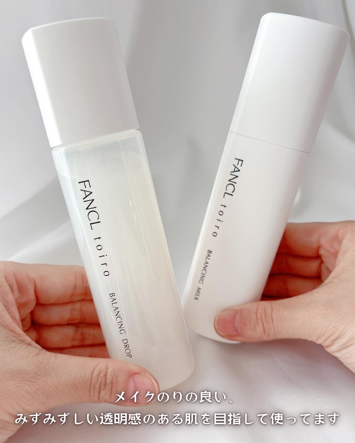 FANCL無添加トイロうるおい・美白・肌あれ予防2週間キットバランシングドロップ(化粧水)バランシングミルク(乳液)toiroの2週間キットを購入してみました!その中から化粧水と乳液をレビューします❣️🤍トイロバランシングドロップ(化粧水)🤍...