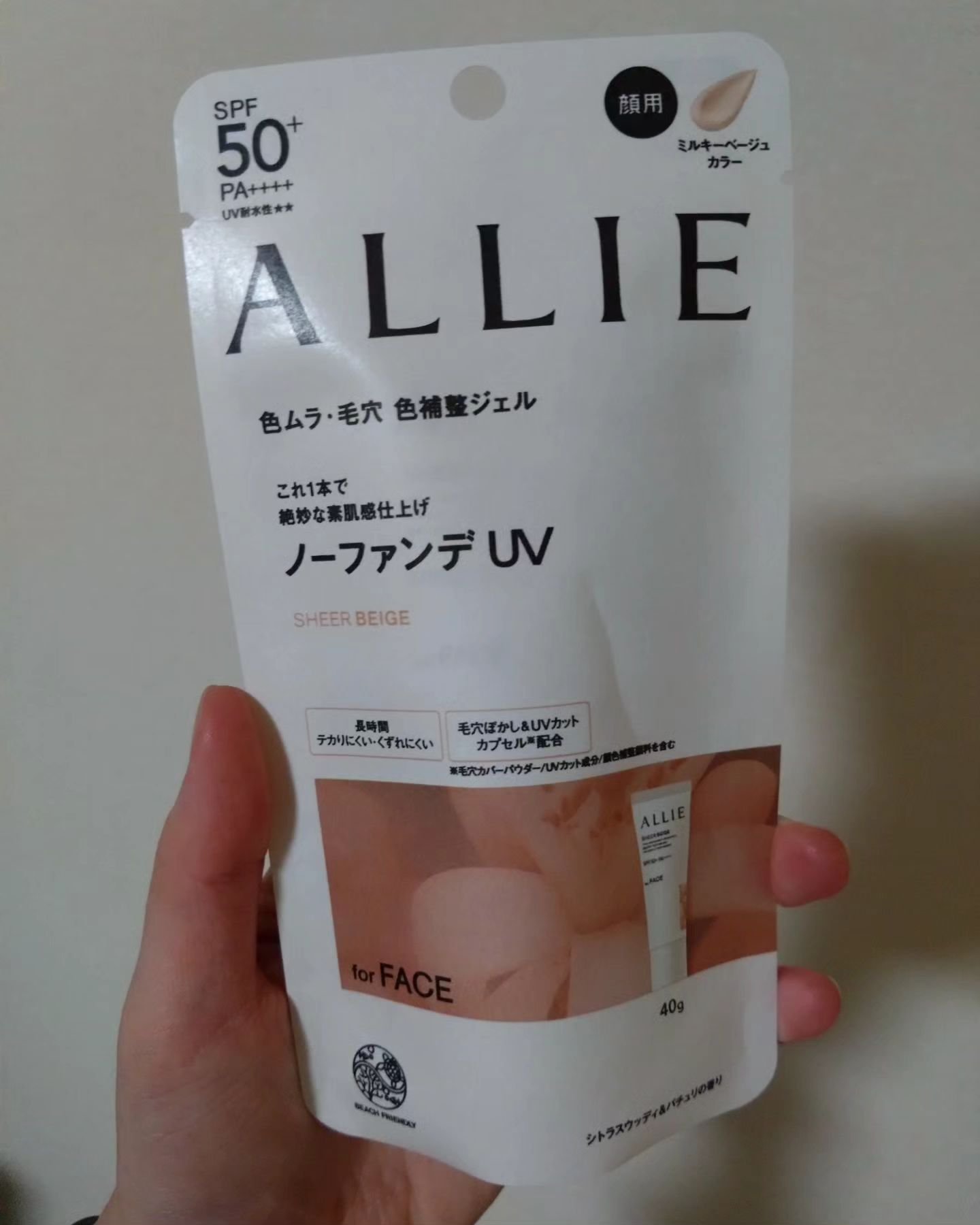 ジェルタイプでつけたあともベタつきにくく、使いやすかったです。 スーパーウォータープルーフで石けんのみで落とすことが出来ます。 顔、体にも使えて化粧下地としても使えるので、これからの季節に活躍してもらいたいと思います!