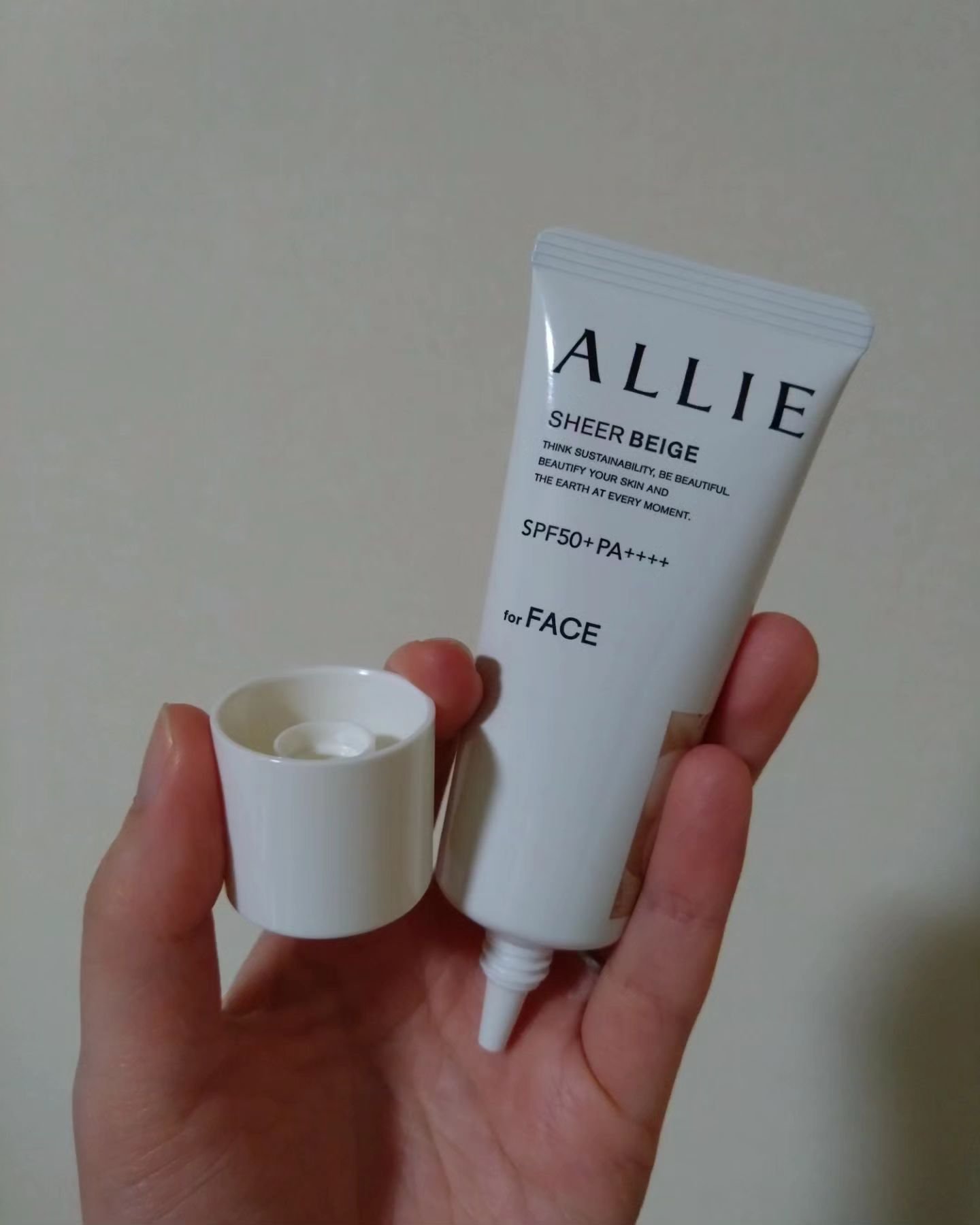 - 世界を想う 美しさつづく*1 日やけ止め おでかけも、マスクを外す機会も増える毎日に。 一部の国・地域・ビーチの規制に配慮した設計のビーチフレンドリー処方。 これ 1 本で、UV カット&顔色補整効果でクマ・くすみ・色ムラまでカバー! テカりにくく、くずれにくいノーファンデ UV*2 【ENNUI PURPLE】 くすみや毛穴をカバー 儚げな透明感のある顔印象続く 澄んだ気分を誘う 紫陽花しずく&セージの香り 【SUNNY APRICOT】 クマや毛穴をカバー いきいきとした血色感のある顔印象つづく 思わず出かけたくなる アプリコット&金木犀の香り 【SHERR BEIGE】 色ムラや毛穴をカバー 均一で抜け感のある顔印象つづく 自然で飾らない シトラスウッディ&パチュリの香り ●一部の国・地域・ビーチの規制に配慮した設計の「ビーチフレンドリー処方」 ●SPF50+・PA++++ ●汗・水 こすれに強く落ちにくい フリクションプルーフ・スーパーウォータープルーフ ●ベタつきにくい感触がつづく ●テカりにくくキレイな肌仕上がりがつづく ●環境に配慮した素材を使用したパッケージ採用 ●美容液成分(保湿)ヒアルロン酸Na配合 ●顔用 ●普段のメイククレンジングで落とせる ●マスク・タオル等につきにくい ●化粧下地効果 *1 スキンケア効果またはメイクアップ効果による肌仕上がりのこと *2 ファンデーション未使用時でも、自然なベースメイクが仕上がる日やけ止めのこと *3 チリ・ほこり・PM2.5・花粉等すべての微粒子汚れの付着を防ぐわけではありません 01:ENNUI PURPLE パープル 02:SUNNY APRICOT アプリコットピンク 03:SHEER BEIGE ミルキーベージュ