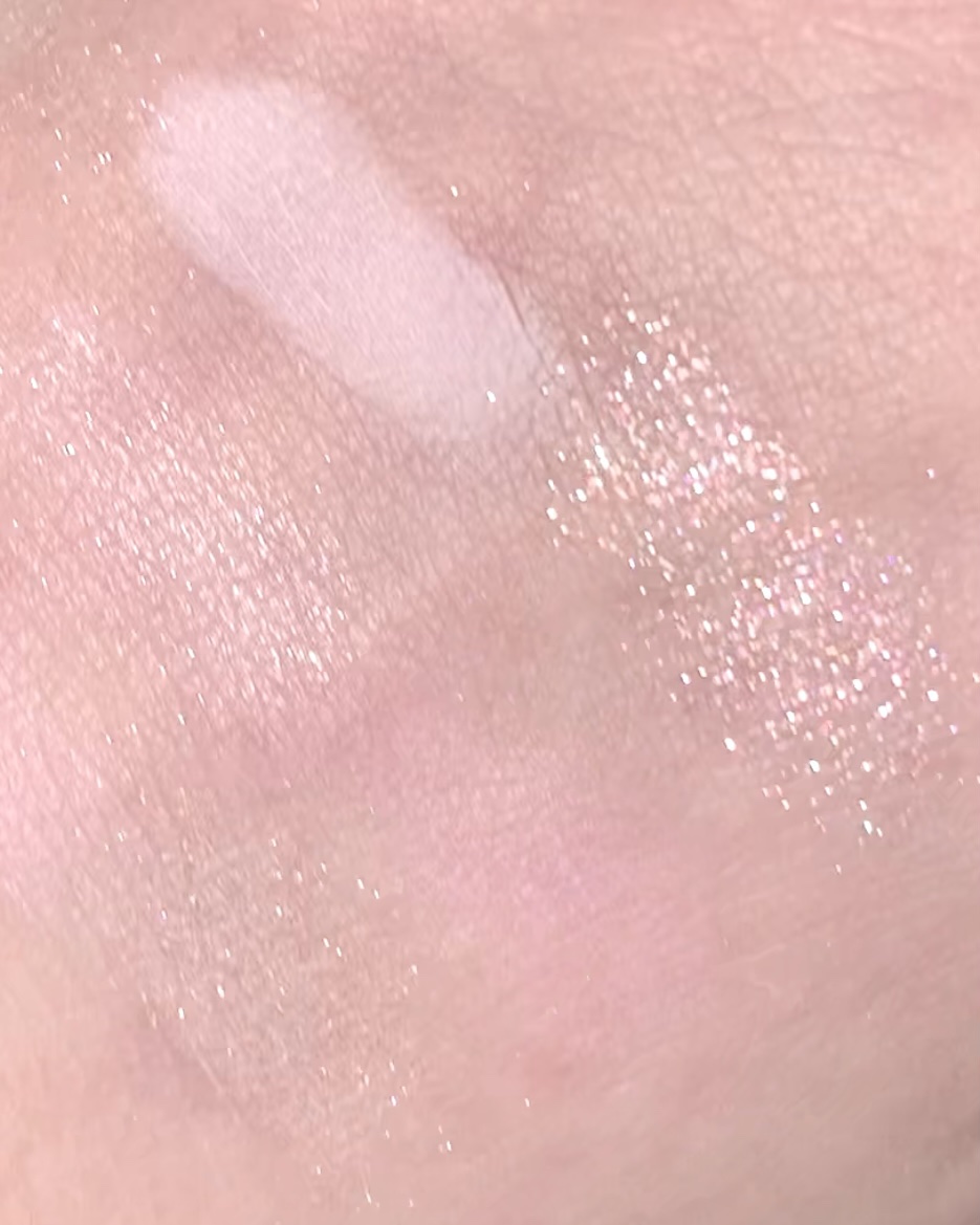 薄ピンクのベースにゴールドとシルバーの繊細なラメでナチュラルメイクにピッタリです🫶🏻 擦っても全然落ちない!😂(4つ目動画) 水に濡らして擦ったら流石にまあまあ落ちちゃうんですけどベースもラメもまだそれなりに残ってます。笑 あんまり重ねすぎるとムラになっちゃうので、1,2度だけ塗るのがおすすめです。 ロフト・ハンズで3/15(金)から先行発売中です!