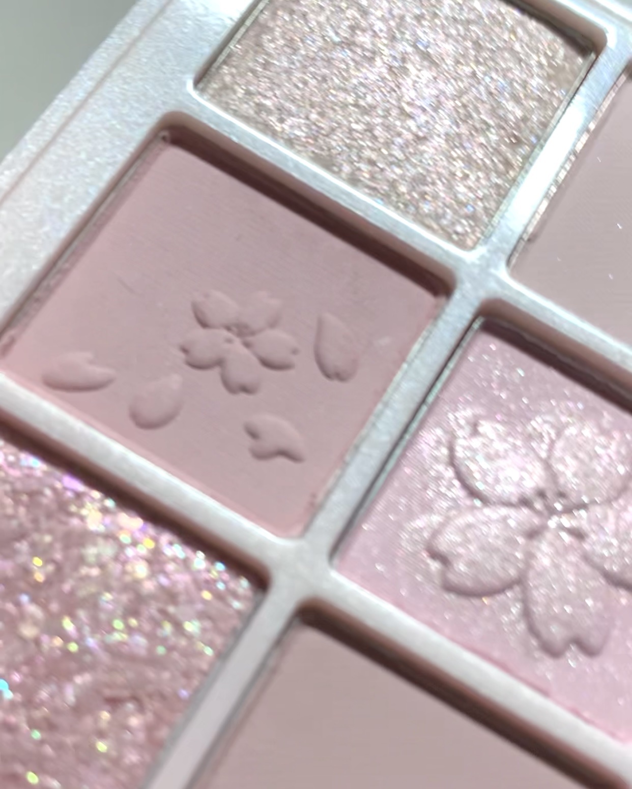 特に左上のピンクとブルー多めの多色ラメが最高に好き🫶🏻 真ん中の桜のキラキラは上に乗ってるだけで触ったら取れちゃうよ…使えない〜🥲 左下のザクザクホロもしっとりしたテクスチャーで擦っても動かなくてദ്ദി^._.^)