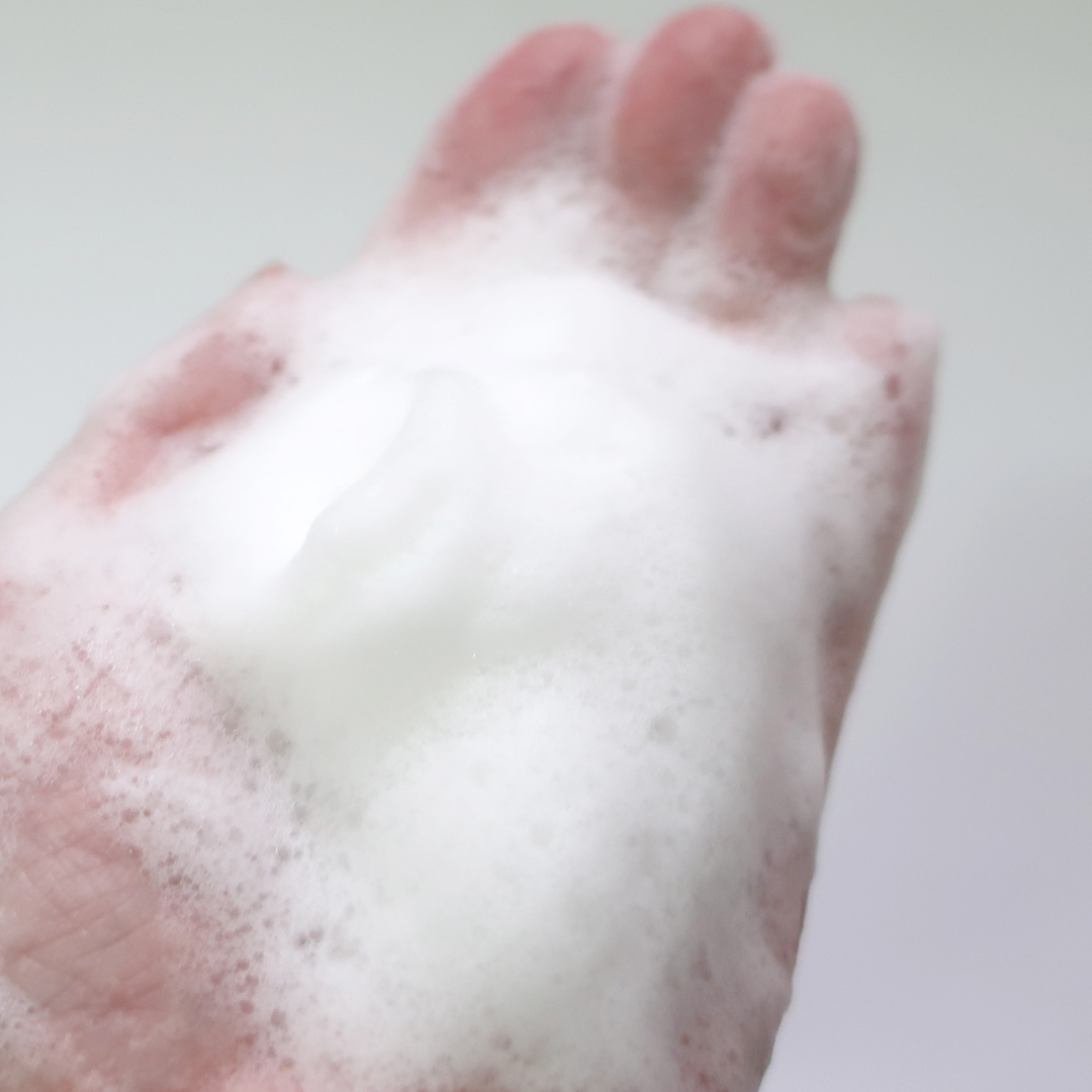 泡は、ふんわり軽いテクスチャーです。顔にのせた泡をハンドプレスで肌におしあてます。泡がパチパチはじける感覚がなくなってきたら、顔全体に軽くなじませるだけでメイクが浮いてくる気がします。泡のメイク落とし、まさつレスがいいですね♪ほのかにホワイト...