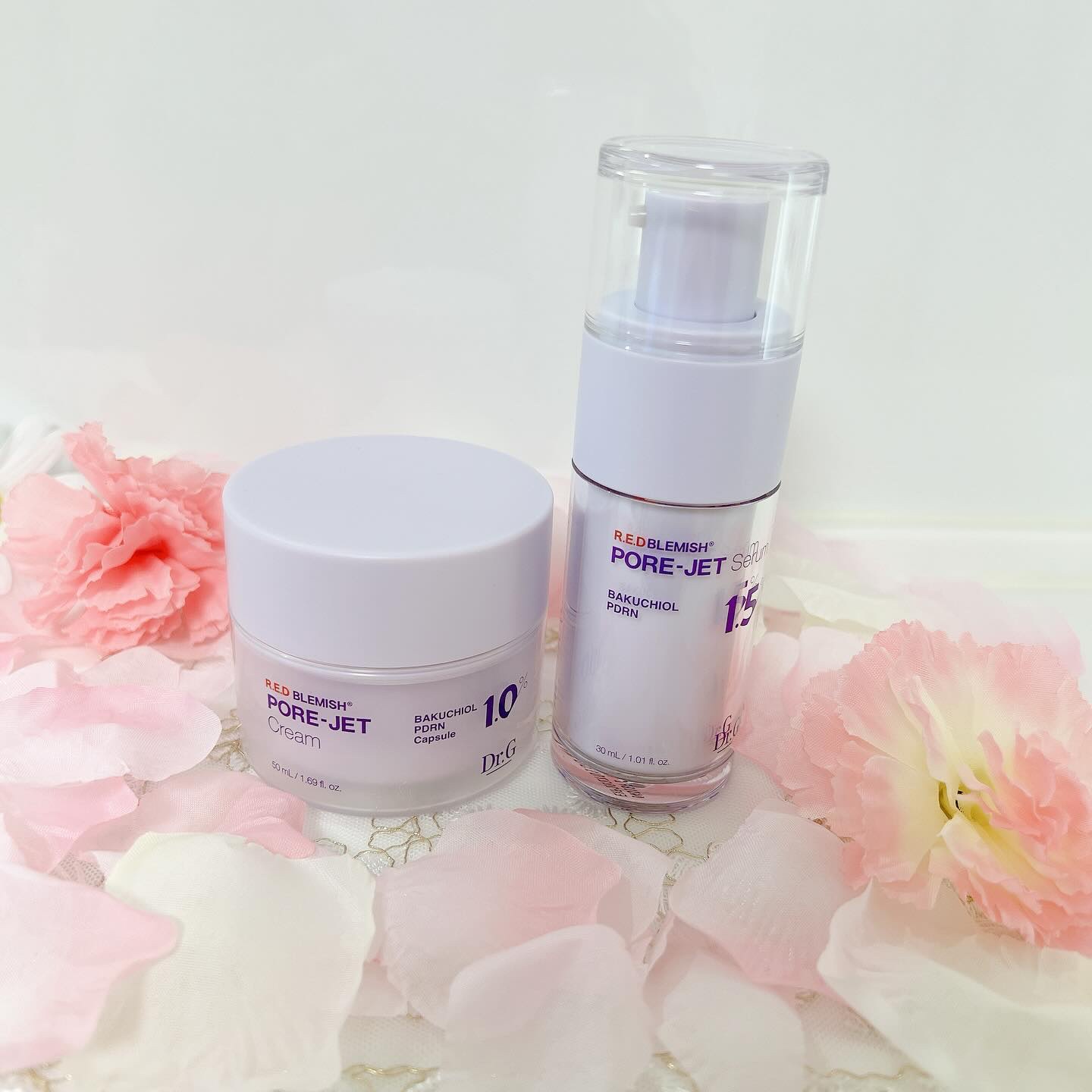 レチノールよりも低刺激と言われているバクチオール配合。弾カケアから肌トーン・キメまでケアし、特に毛穴のケアに効果的✨ どちらもベタつきはないけどちゃんとしっとり保湿感があるので乾燥する季節も安心して使えそう🫧