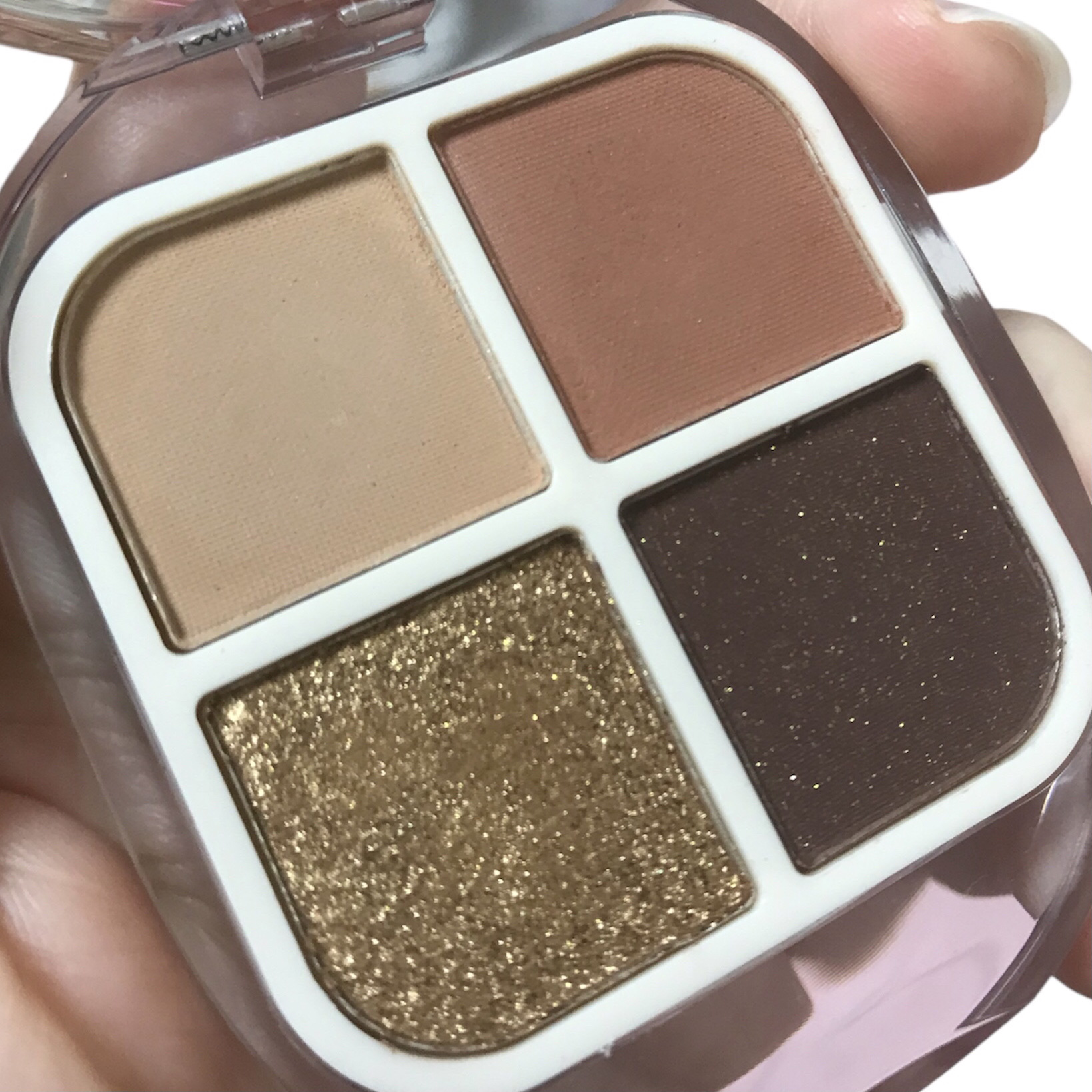 GlamColourシーリングスタンプ風4色アイシャドウ#01夕焼けの光Qoo10で500円くらいで購入。オーロラカラーのバラのパケが素敵。粉質はややしっとり、上2色はナチュラルな発色、締め色とラメはしっかり発色。ラメはギラギラしすぎず細かめ...