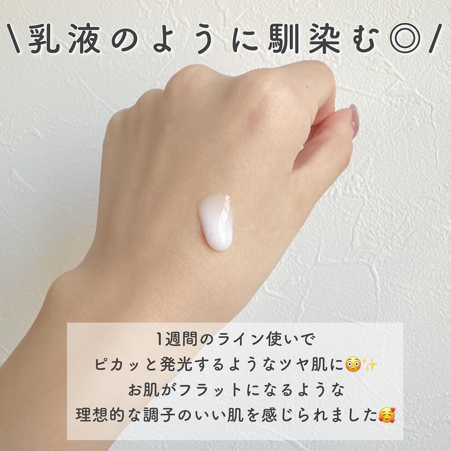 | テクスチャーは乳液のような水分たっぷり✨ 伸びが良くすーっと馴染み ベタつきがなくしっとりするので 軽い使い心地で使いやすいです🙌 | 詳細を見る | |