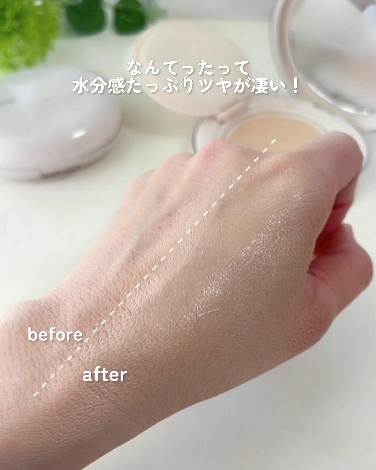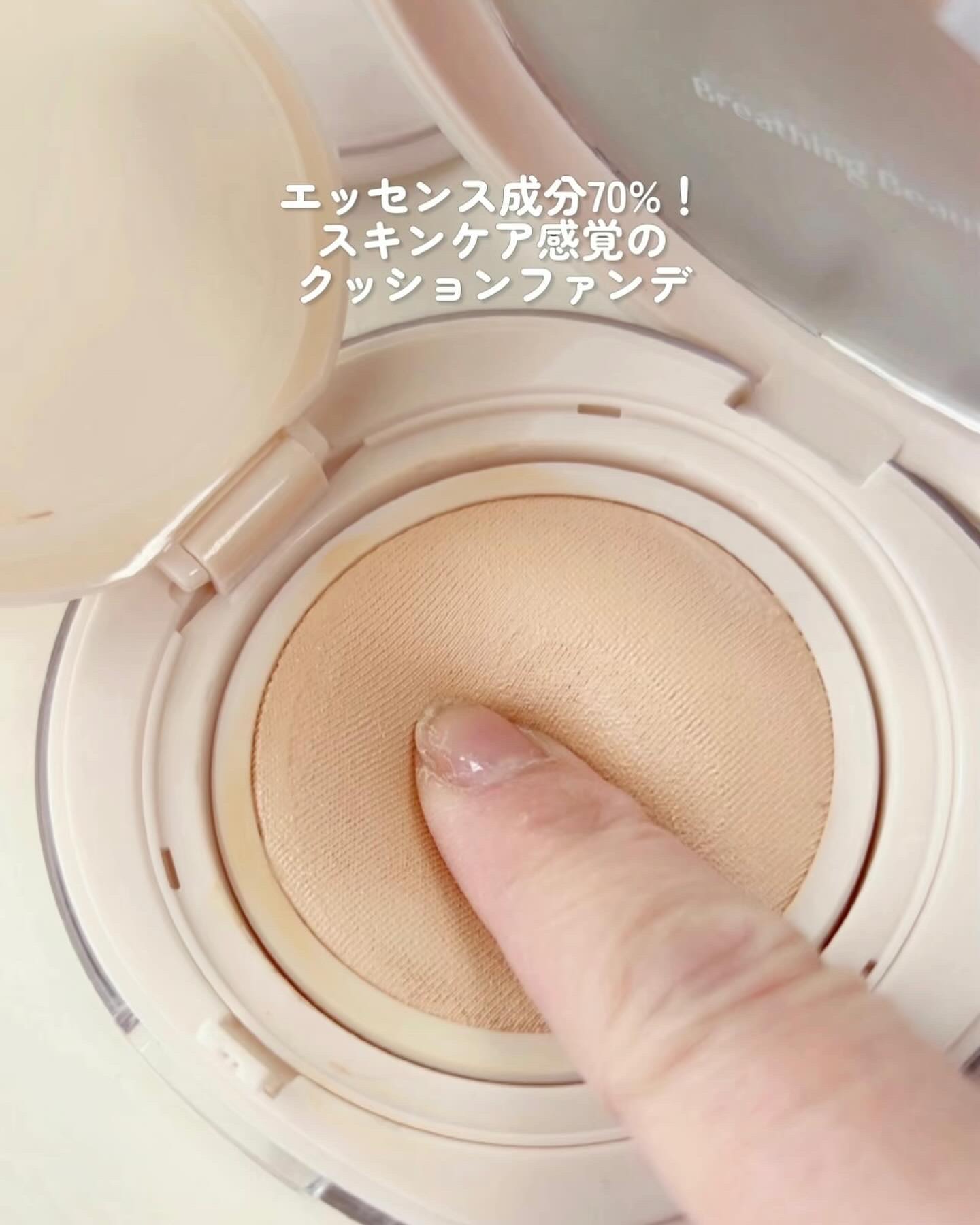 - テクスチャーは、肌が呼吸をするように、軽くて快適な、スキンブリージングテクスチャーです。 スキンケア成分を70%も使っているので、オイル感のあるツヤではなく、しっとりとして潤いが感じられる水分GLOWです。 光の屈折を利用して肌が輝きます。 パフでたたきこむことで、ぴたっと肌に密着し、毛穴もしっかりカバーしてくれます。