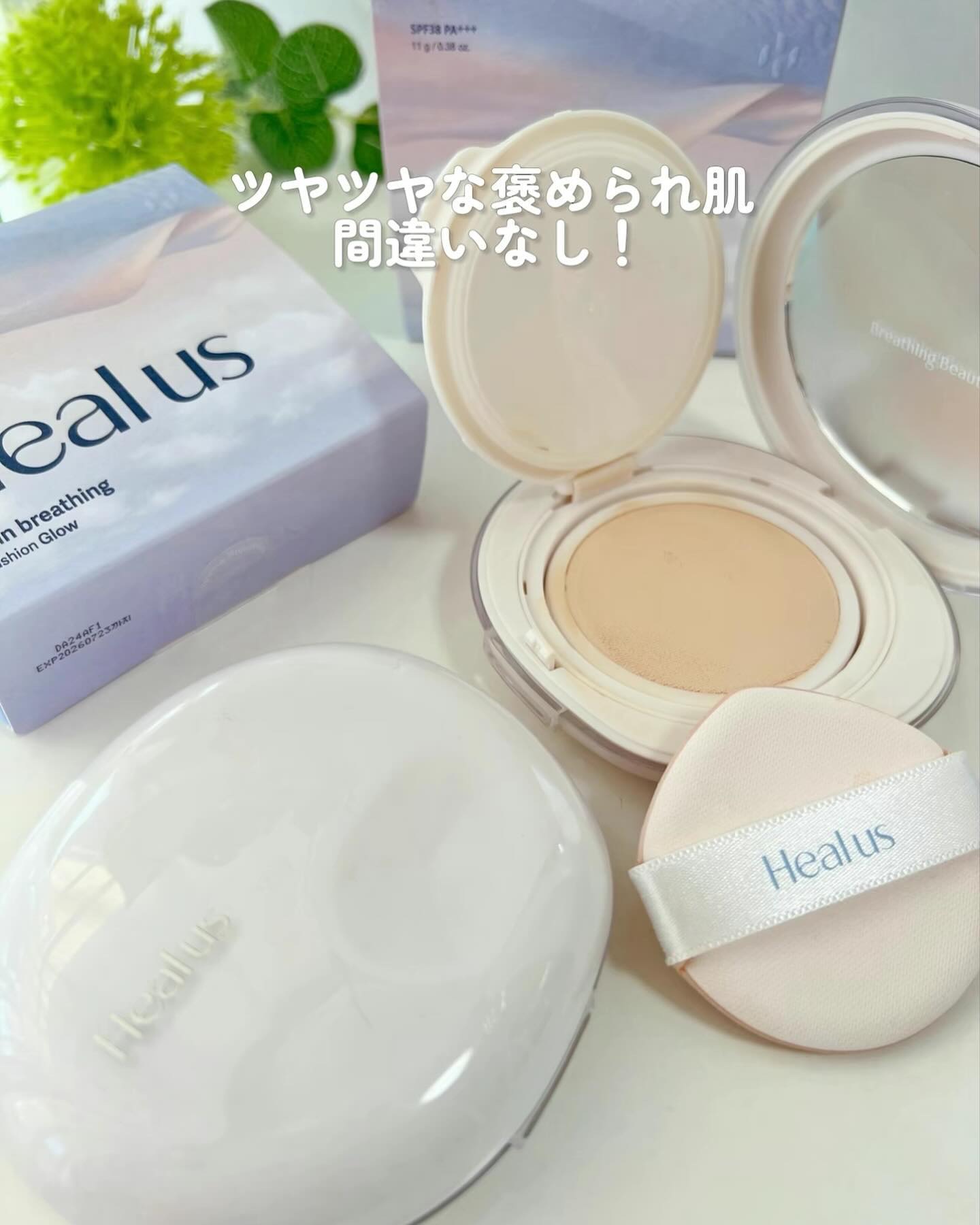 ホーリーバジルという独自成分を使っています オメガ6セラミド等スキンケア成分70%使っているので、しっとり潤う感じの水分glow スポンジも収納できて持ち運びやすいクッションファンデ❣️
