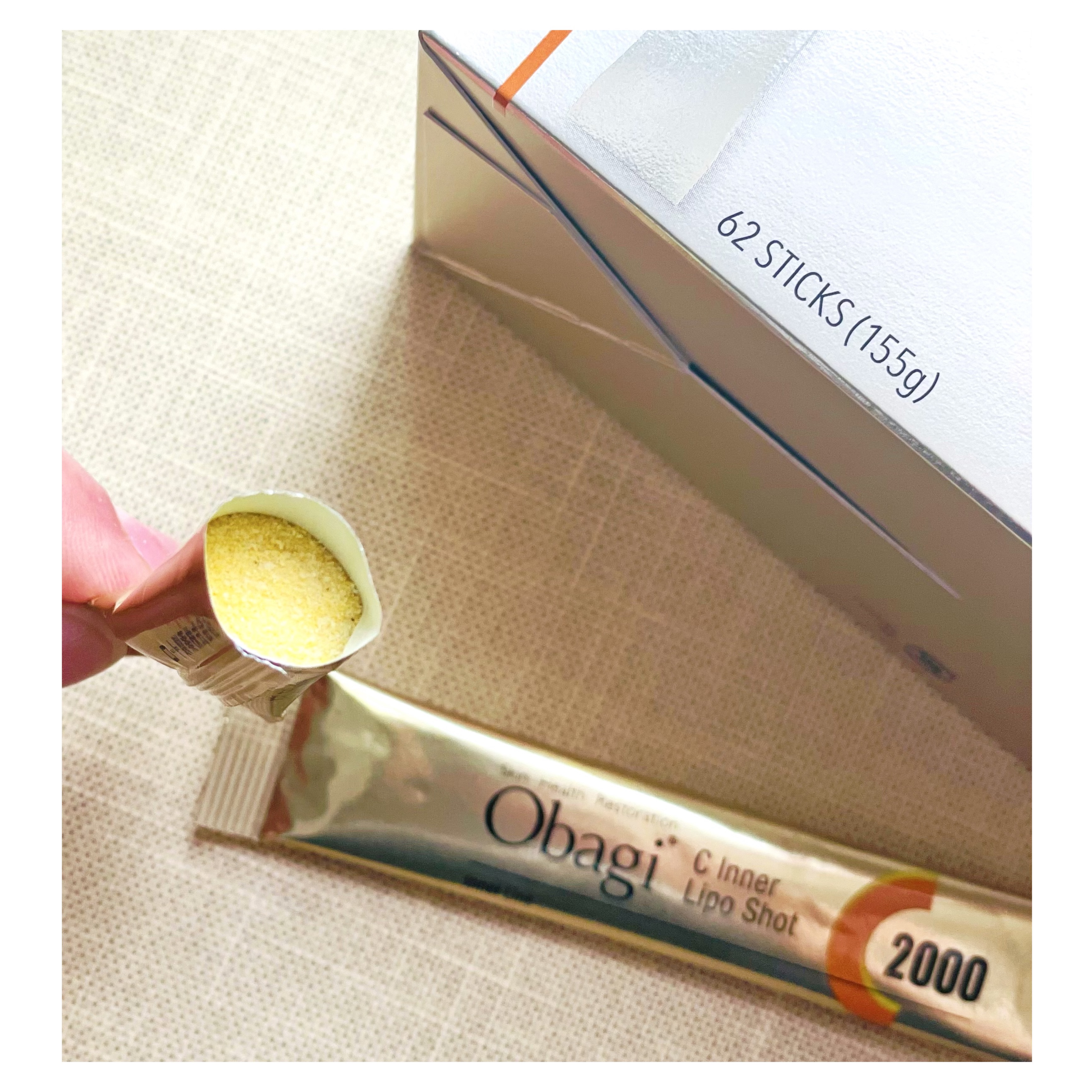 - オバジが提案する飲む“ビタミンC”。オリジナルのリポショットC*を配合し、すばやく届けることを目指し開発した顆粒タイプ。内側からハリとうるおいのある毎日を応援し、透き通るような美しさをサポートします。 <オバジ独自の研究により内側にアプローチ> 1. オバジ独自のリポショットC*。ビタミンCを1日(目安量)当たり2000mg配合。 2. 美容サポート成分のコラーゲンペプチド、コラプラス®に加え、ツボクサエキス、ヒハツエキス配合。 3. 毎日続けていただくために、水なしでもお召し上がりいただけるよう味やくちどけにこだわりました。 ・グレープフルーツ風味 ・顆粒タイプ ・ノンカフェイン *ビタミンC、ヒマワリレシチン、ウコンエキス、加工デンプン、加工油脂