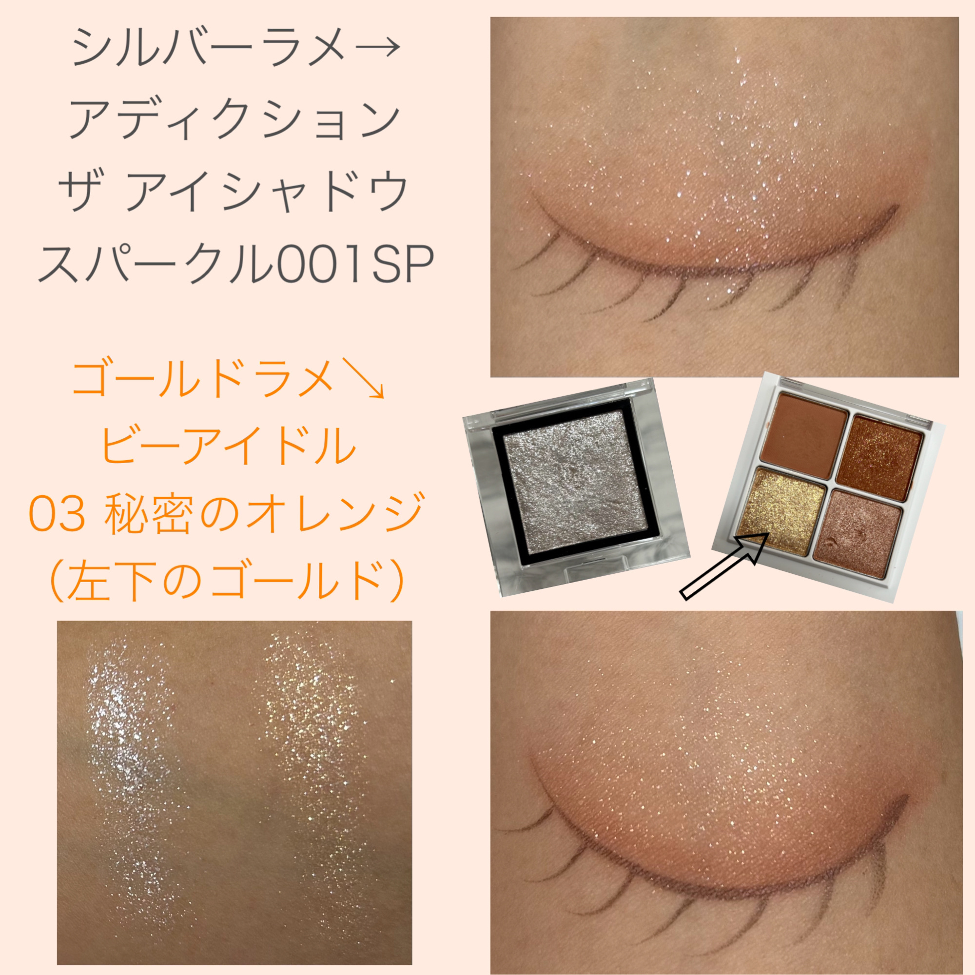 このオレンジが可愛くて、果物のオレンジと言うよりはパンプキン🎃カボチャみたいなパキッとしたオレンジです(*´꒳`*)💓 二重幅気持ち広めに濃く塗ると凄く可愛くって、その後に瞼中央にゴールドシャドウをのせるとすっごくキラキラして、目が大きく見えて色も調和されて可愛かったです💓💓💓 でもこのオレンジってあまり見ないし最近オレンジのアイシャドウ使いたくて色々見て回ってたけれど、これがツボでした。可愛い可愛い可愛い🎃🎃🎃