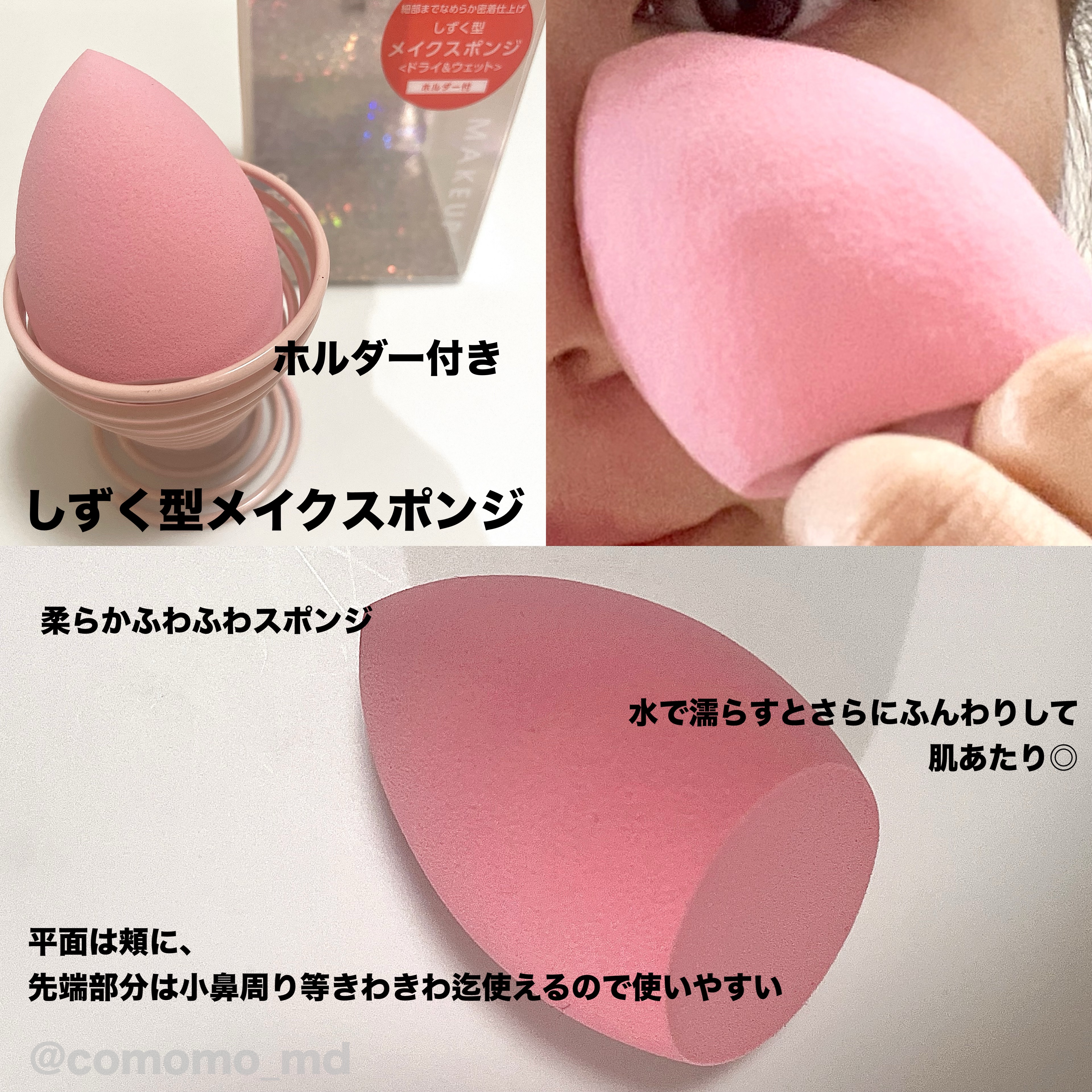 リキッドファンデーションのベースメークの仕上がり感アップ!✨ 肌あたりなめらかで柔らかい立体スポンジ! しずく型が細部までフィットするので小鼻なども塗りやすくロゴもさりげなく可愛いです❣️ ホルダー付なので飾っても可愛くオススメ😊︎︎👍